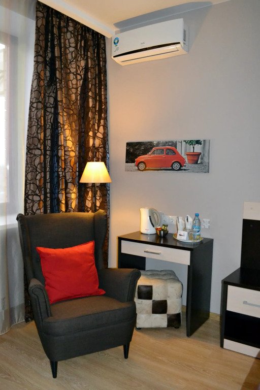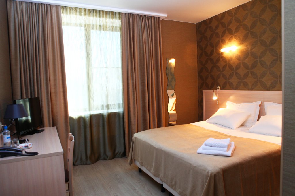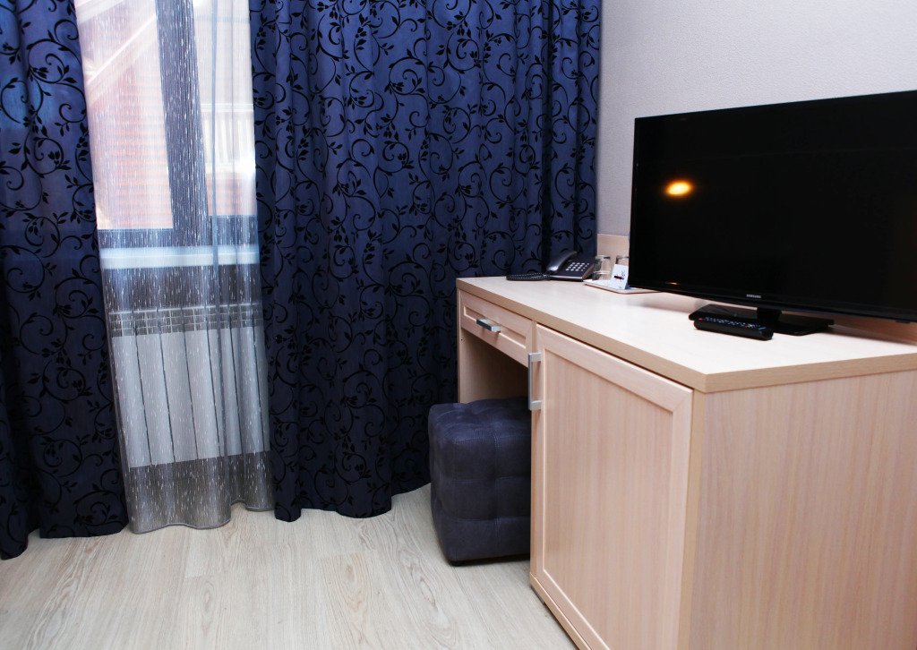 Номер уютно обставлен и оснащён необходимым, чтобы отдохнуть после долгого и насыщенного дня. Имеются телевизор. Оснащение зависит от выбранной категории номера.