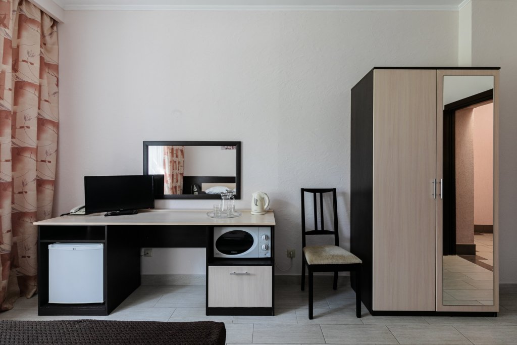 Во всех номерах к услугам гостей отдельный санузел с душем или ванной, телевизор, телефон, мини-холодильник, микроволновая печь, чайник и набор посуды.