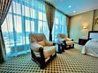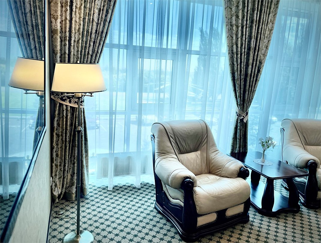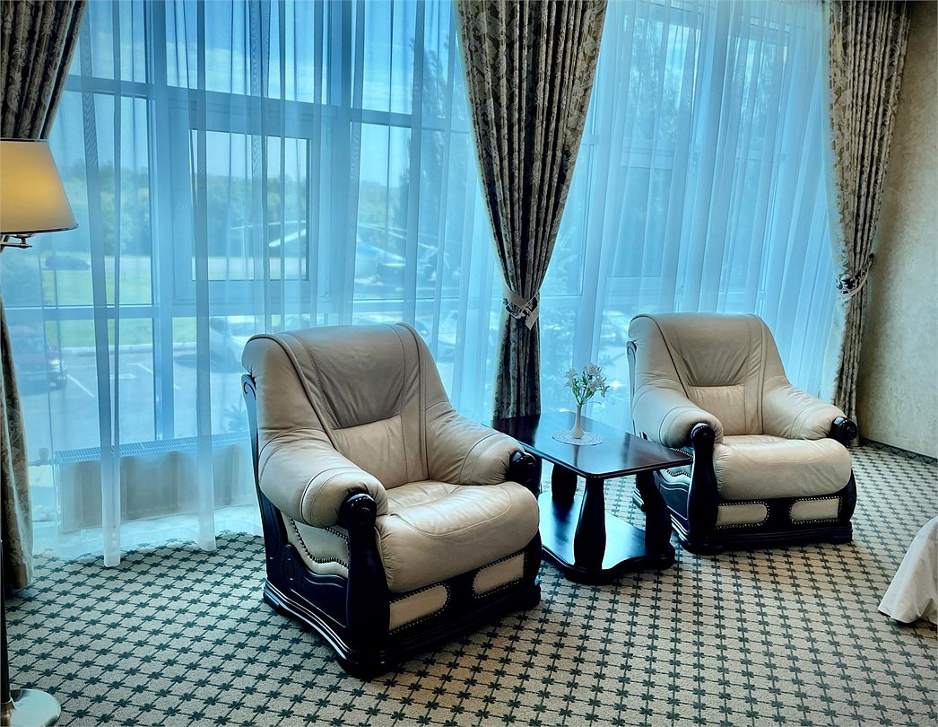 телевизор, кабельное телевидение, Wi-Fi, телефон, кондиционер, светильник, фен, электронные замки, ванная комната, ванна, халаты, банные полотенца, тапочки, гигиенические средства, балкон с красивым видом, двуспальная кровать, тумбы, шкаф для одежды, вешалки, журнальный столик, письменный стол, зеркало, пуфики, две комнаты, письменные принадлежности, чайный набор, набор посуды, обслуживание номеров, информационная карта, меню, сейф, чайник, унитаз, раковина, гостиная зона, ковровое покрытие, отопление, вид на город, кресло, высокие потолки, стаканы, стул, раскладной диван, мини-холодильник, межкомнатная дверь, услуги прачечной (платно), бутилированная вода, шапочка для душа, затемняющая штора, без питомцевВ номере