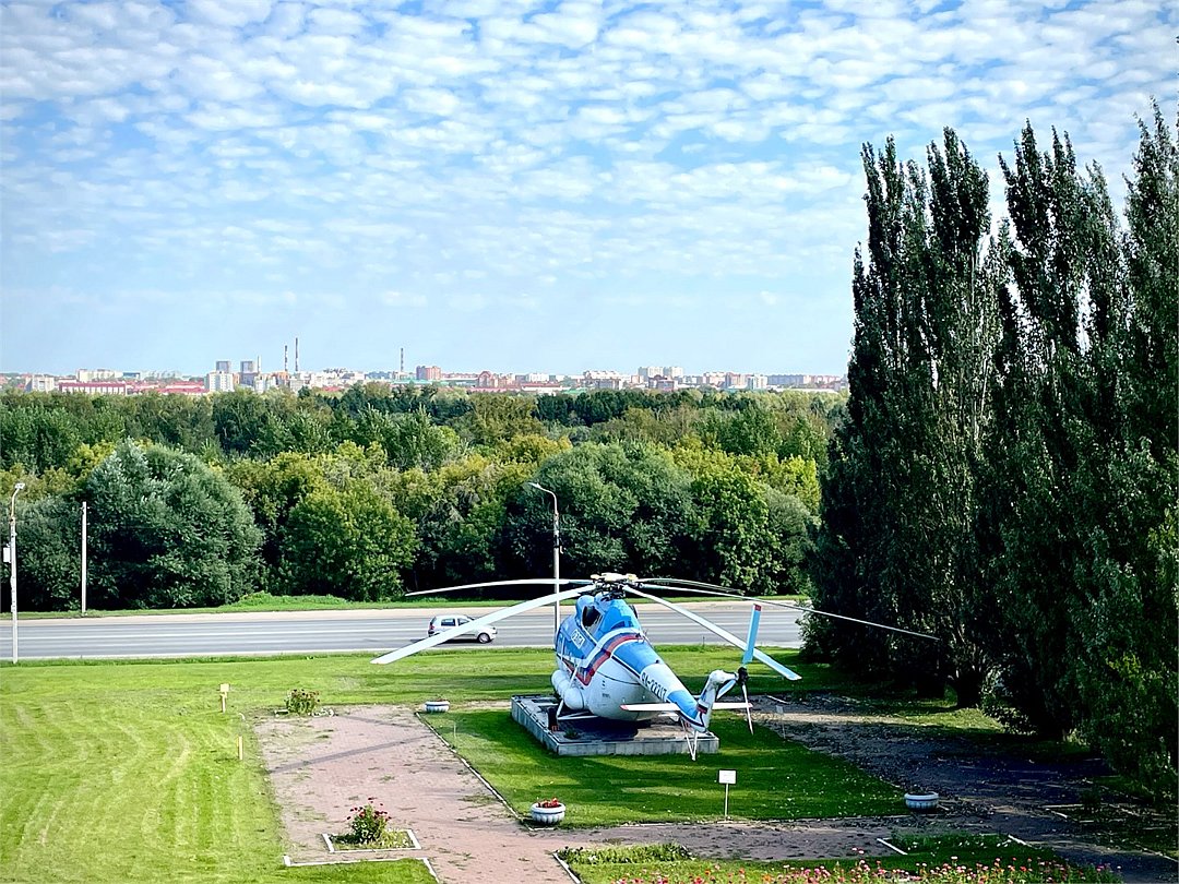 Номер с панорамными окнами с видом на вертолет. Кровать размером 180 см х 200 см. Все номера на 2-м этаже.Услуги и удобства