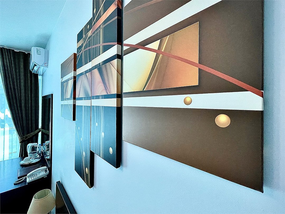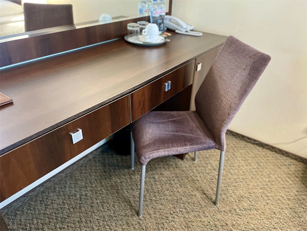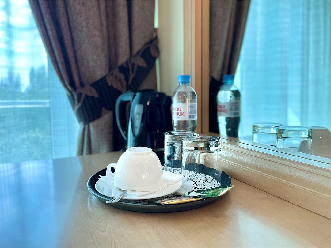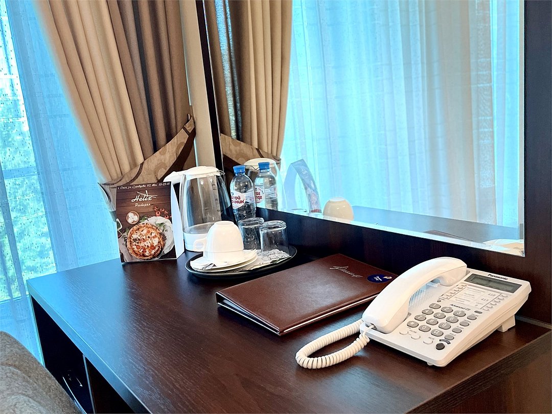 телевизор, кабельное телевидение, Wi-Fi, телефон, кондиционер, настольные лампы, фен, электронные замки, ванная комната, банные полотенца, тапочки, гигиенические средства, балкон с красивым видом, двуспальная кровать, тумбы, шкаф для одежды, вешалки, письменный стол, багажная тумба, зеркало, чайный набор, информационная карта, меню, чайник, унитаз, раковина, ковровое покрытие, отопление, душ, стаканы, стул, мини-холодильник, услуги прачечной (платно), вешалки-плечики, бутилированная вода, шапочка для душа, затемняющая штора, окна от пола до потолка, без питомцевВ номере