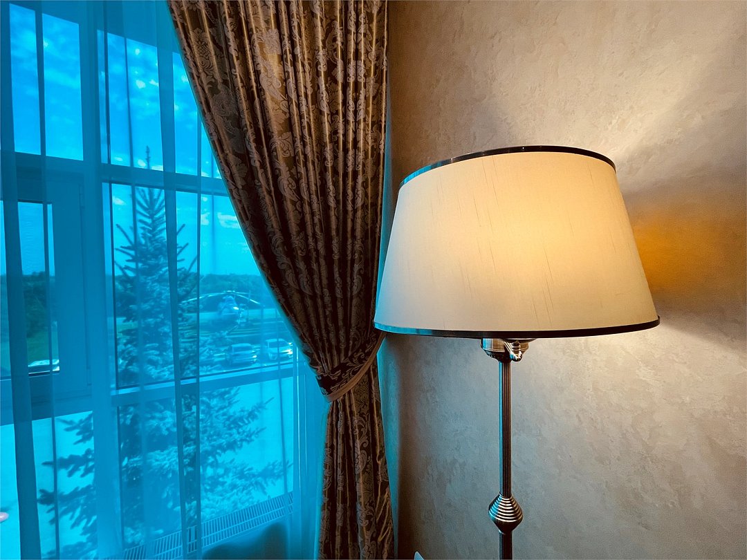 телевизор, кабельное телевидение, Wi-Fi, телефон, кондиционер, светильник, фен, электронные замки, ванная комната, ванна, халаты, банные полотенца, тапочки, гигиенические средства, косметические средства, кровать «King size», кресла, тумбы, шкаф для одежды, вешалки, журнальный столик, письменный стол, багажная тумба, зеркало, пуфики, письменные принадлежности, чайный набор, набор посуды, информационная карта, меню, сейф, чайник, унитаз, раковина, гостиная зона, ковровое покрытие, отопление, вид на город, высокие потолки, стаканы, стул, мини-холодильник, услуги прачечной (платно), вешалки-плечики, бутилированная вода, затемняющая штора, окна от пола до потолка, без питомцевВ номере