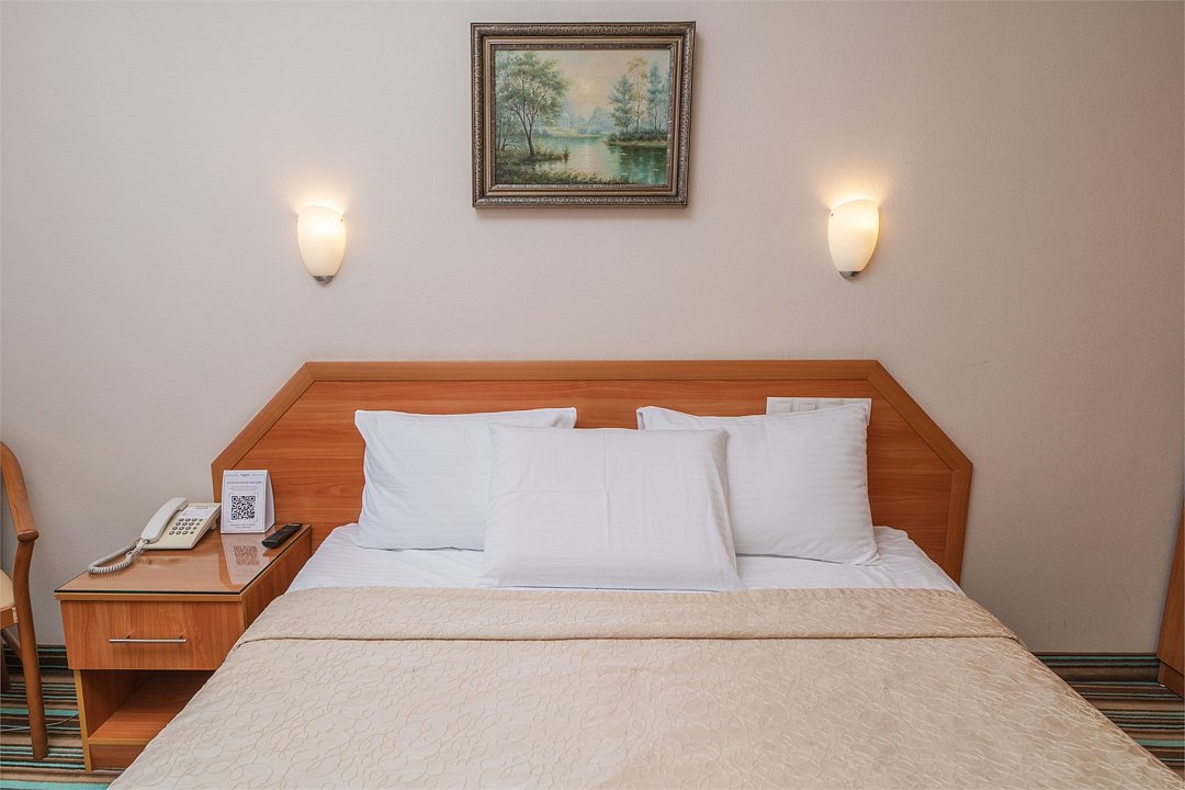 Однокомнатный номер повышенной комфортности с одной двуспальной кроватью. Площадь номера - 20 кв.м.Услуги и удобства