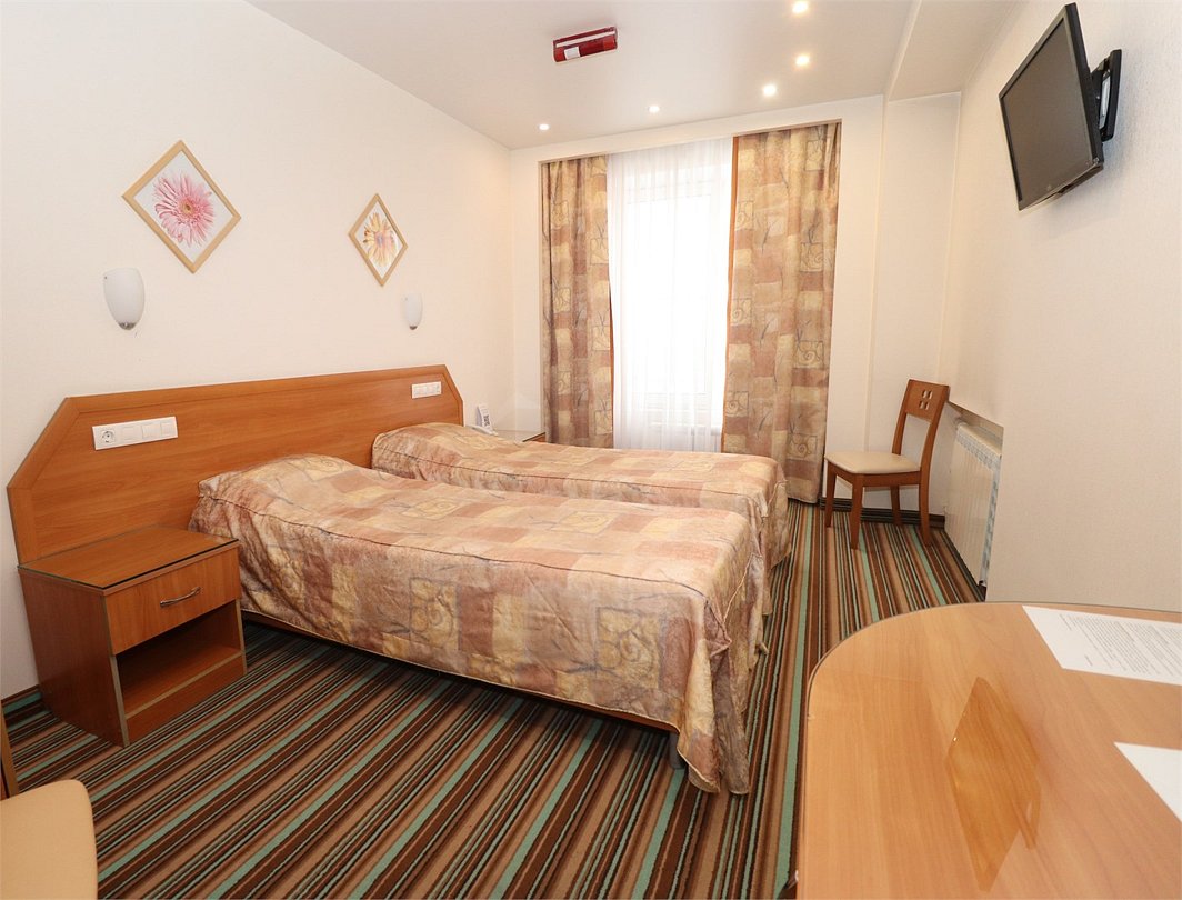 Однокомнатный стандартный номер с двумя раздельными односпальными кроватями. Площадь номера - 20 кв.м.Услуги и удобства