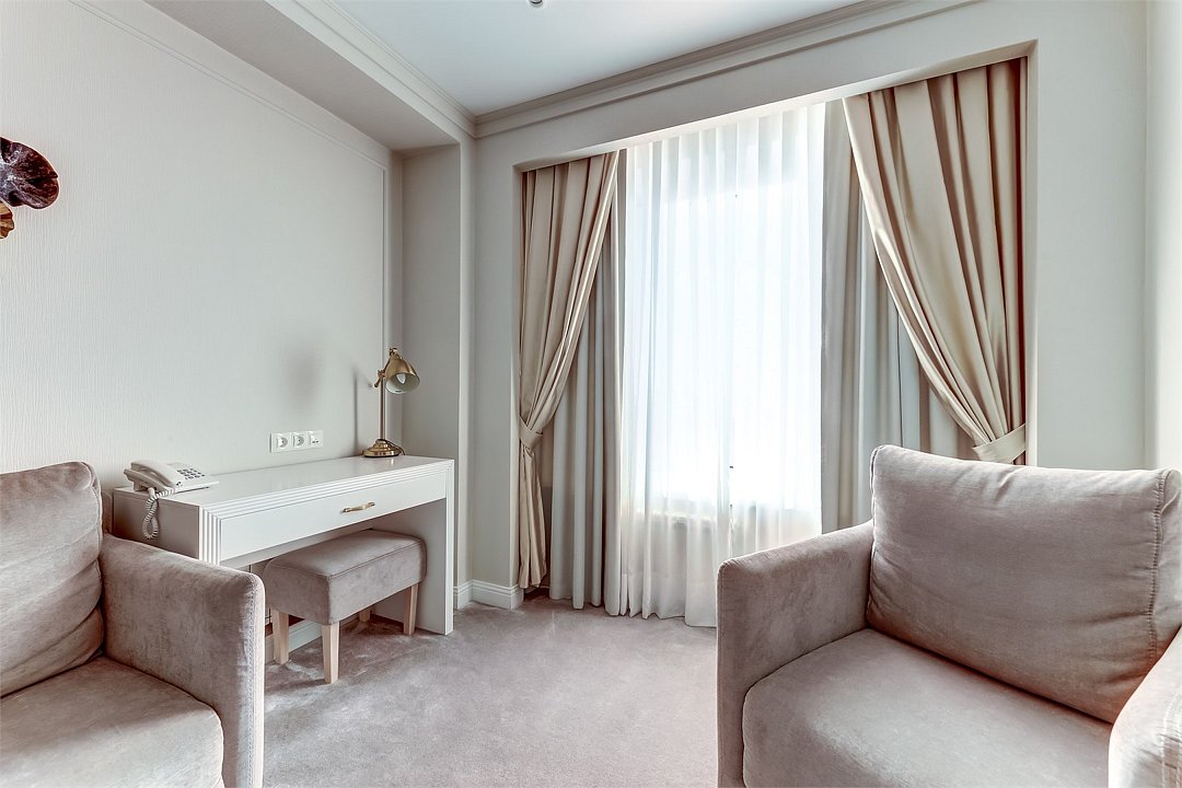 кабельное телевидение, Wi-Fi, телефон, кондиционер, светильник, настольные лампы, фен, система безопасности, электронные замки, кофемашина, ванная комната, душевая кабина, ванна или душевая кабина, биде, халаты, банные полотенца, тапочки, гигиенические средства, косметические средства, кровать «Queen size», кресла, тумбы, шкаф для одежды, вешалки, журнальный столик, багажная тумба, зеркало, две комнаты, мини-бар, чайный набор, обслуживание номеров, информационная карта, меню, сейф, чайник, унитаз, раковина, питьевая вода, гостиная зона, ковровое покрытие, отопление, вид на город, кулер на этаже, вид на реку, кресло, стаканы, туалетный столик, стул, стол, туалетный столик, туалетные средства, раскладной диван, телевизор с плоским экраном, мини-холодильник, номер для некурящих, пуфик, без питомцевВ гостиничном номере