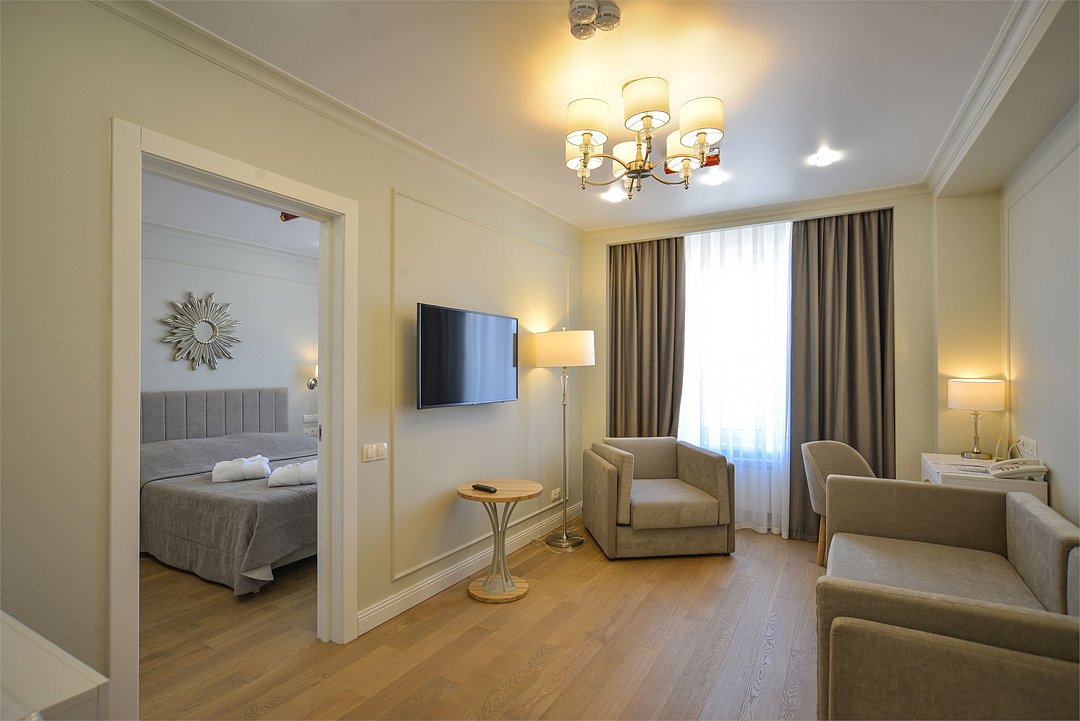 Просторный двухкомнатный номер с гостевой зоной. Площадь номера - 30-40 кв.м.Услуги и удобства