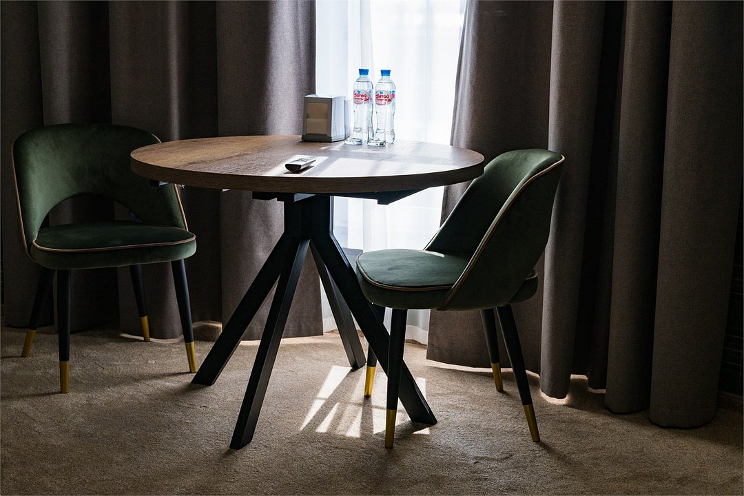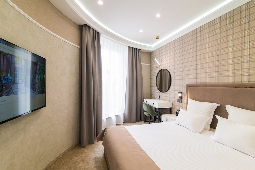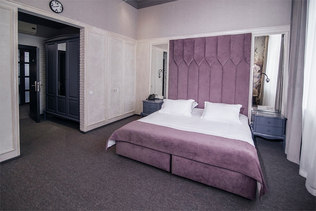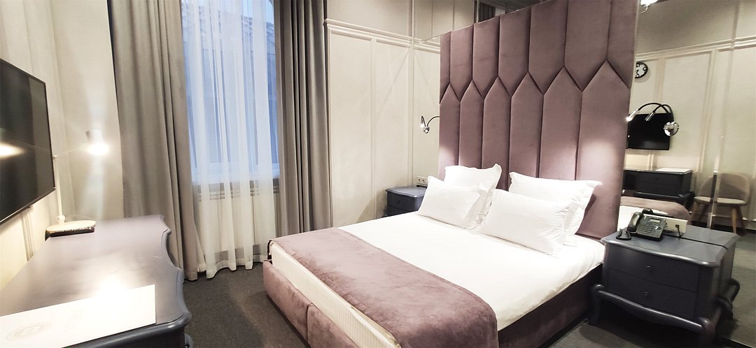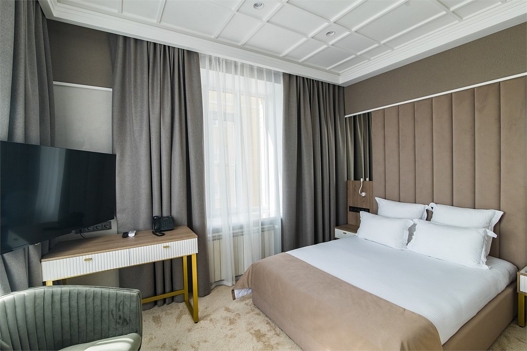 телевизор, кабельное телевидение, Wi-Fi, холодильник, кондиционер, фен, электронные замки, ванная комната, ванна, биде, банные полотенца, тапочки, гигиенические средства, косметические средства, двуспальная кровать, стулья, шкаф для одежды, вешалки, письменный стол, багажная тумба, зеркало, обслуживание номеров, сейф, унитаз, раковина, ковровое покрытие, кулер на этаже, без питомцевВ номере