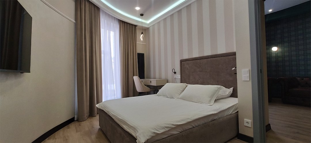 кабельное телевидение, Wi-Fi, телефон, кондиционер, настольные лампы, фен, электронные замки, биде, теплый пол, халаты, тапочки, косметические средства, двуспальная кровать, стулья, шкаф для одежды, зеркало, унитаз, раковина, душ, тумба, туалетные средства, телевизор с плоским экраном, мини-холодильник, гостиничная парфюмерия, телевизор со Smart TV, usb порт, рабочий стол, без питомцевВ номере