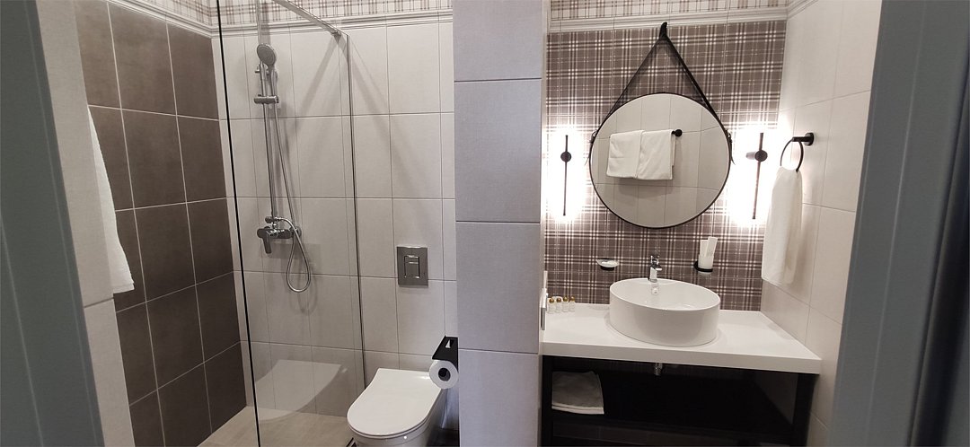 кабельное телевидение, Wi-Fi, кондиционер, фен, душевая кабина, халаты, тапочки, гигиенические средства, кровать «Queen size», диван, зеркало, унитаз, раковина, душ, вид на город, туалет, телевизор с плоским экраном, телевизор со Smart TV, гигиенический душ, шапочка для душа, мыло, без питомцевВ номере