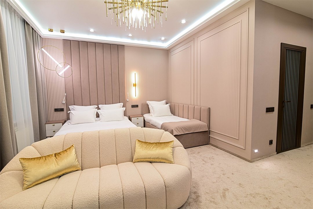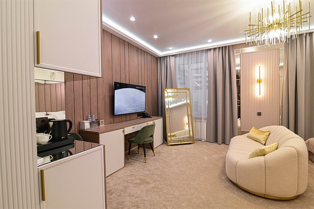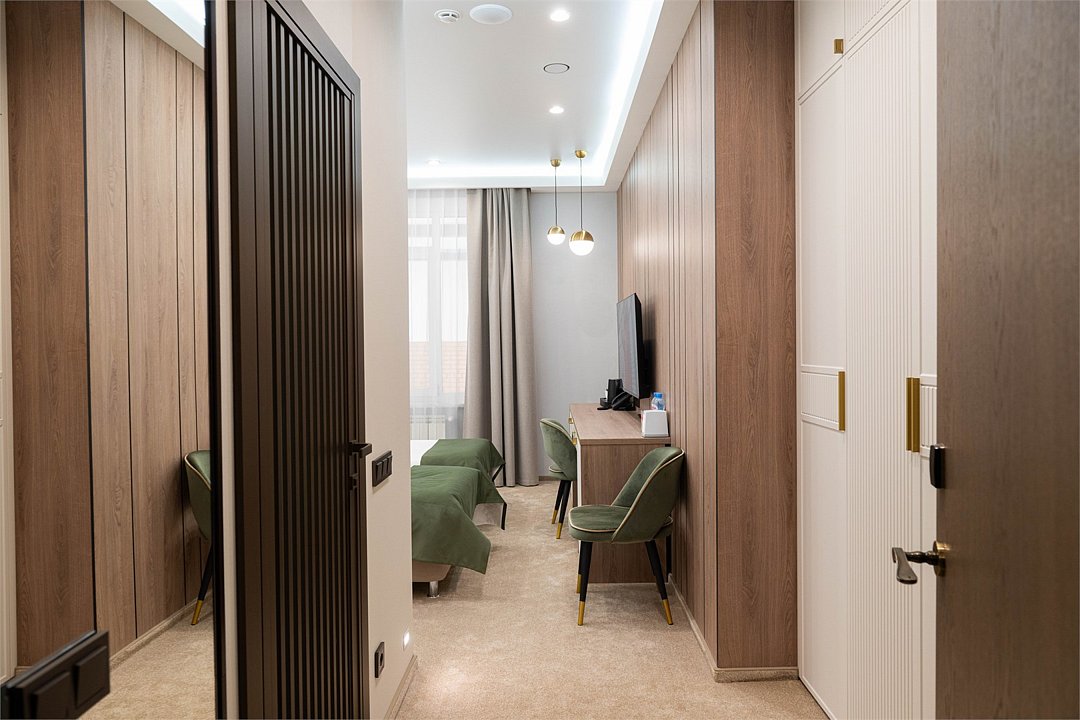 телевизор, кабельное телевидение, Wi-Fi, фен, электронные замки, теплый пол, халаты, банные полотенца, тапочки, двуспальная кровать, односпальная кровать, диван, зеркало, сейф, унитаз, раковина, питьевая вода, отопление, окна выходят в атриум отеля, стаканы, туалетные средства, сплит-система, цифровое тв, телевизор с плоским экраном, мини-холодильник, гостиничная парфюмерия, телевизор со Smart TV, рабочий стол, гигиенический душ, чайная станция, вешалки-плечики, мыло, прачечная (за дополнительную плату), дождевой и ручной душ, без питомцевВ номере