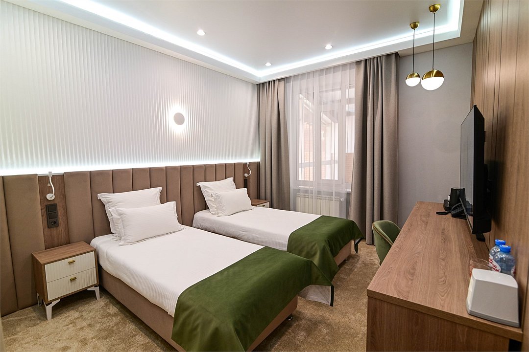 Двухместный номер с двумя отдельными кроватями с кондиционером, телевизором, сейфом, и собственной ванной комнатой.Услуги и удобства