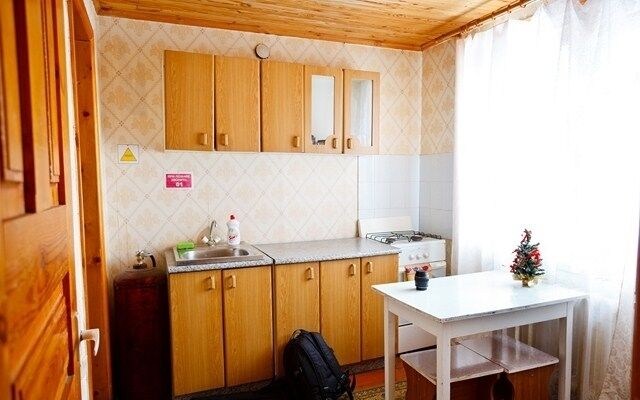 Для проживания предлагаются 3 просторных корпуса на 10 человек. В каждом из корпусов оборудованы 5 спален на двух человек, общая комната, душевая, два туалета. Подача газа, холодной и горячей воды осуществляется круглый год. Также гости могут выбрать для проживания один из деревянных домиков на 2 чел. (в каждом имеется спальня, отдельный санузел, душевая кабина и кухня).