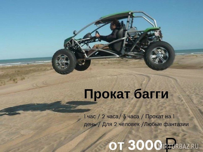 Предлагается в аренду багги для двоих и в качестве пассажира. на 1,2,3 часа, а так же на день. От 3000 рублей за 1 час. Участников - 2 человека.