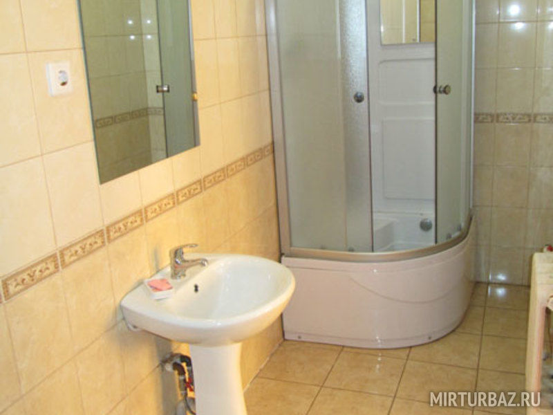 Номер имеет в наличии две односпальные кровати, мебель, ванную комнату с душевой кабиной и совмещенным санузлом.