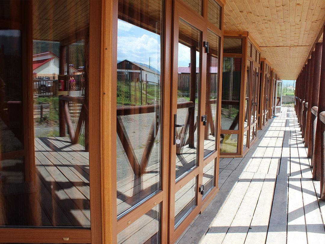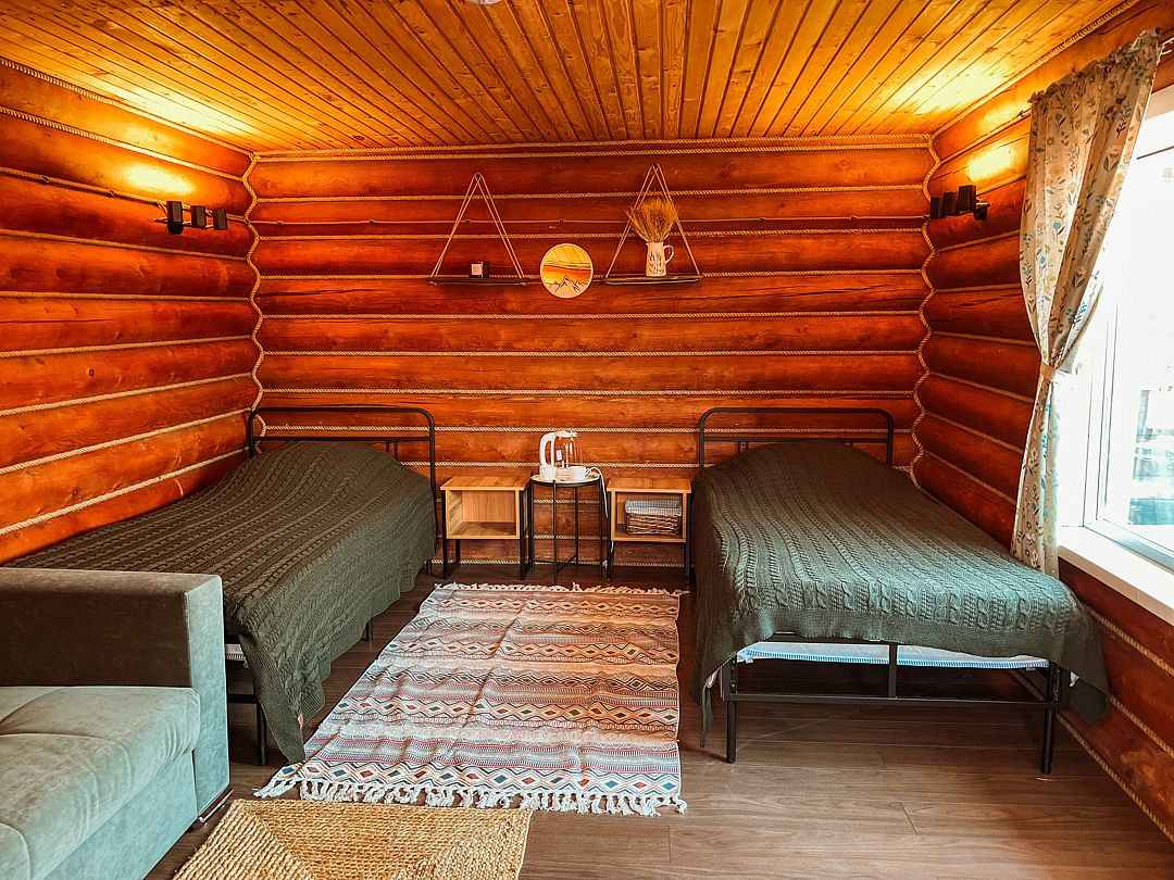 Отдельностоящий двухэтажный комфортабельный коттедж находится на основной территории базы рядом с большим бассейном и баней. В домике можно разместить семью до шести человек.