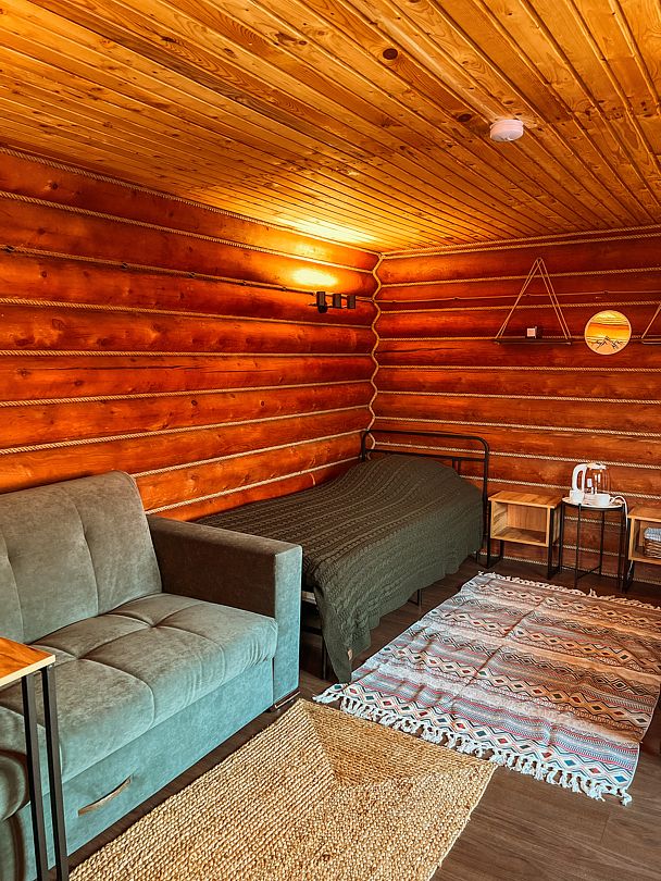 Дизайнерский домик в стиле лофт. Находится на основной территории, рядом с большим бассейном и детской площадкой.