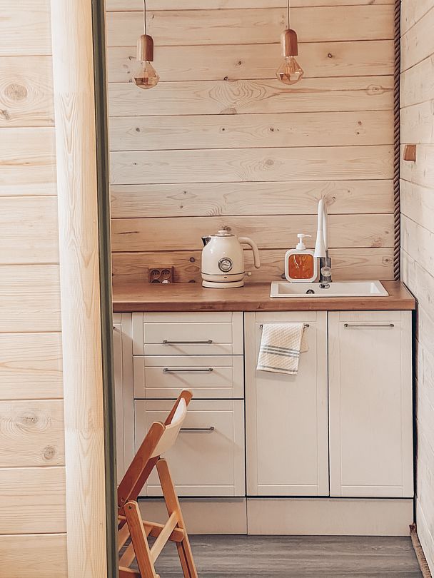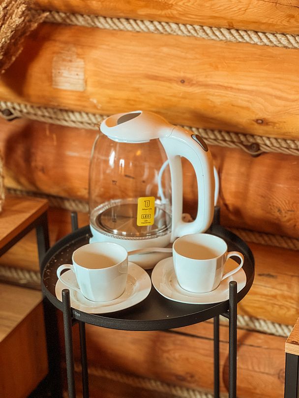 - прикроватные тумбочки, комод, кухонная зона, буфет, чайник;
