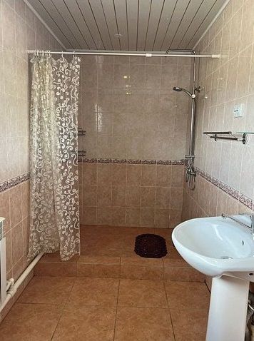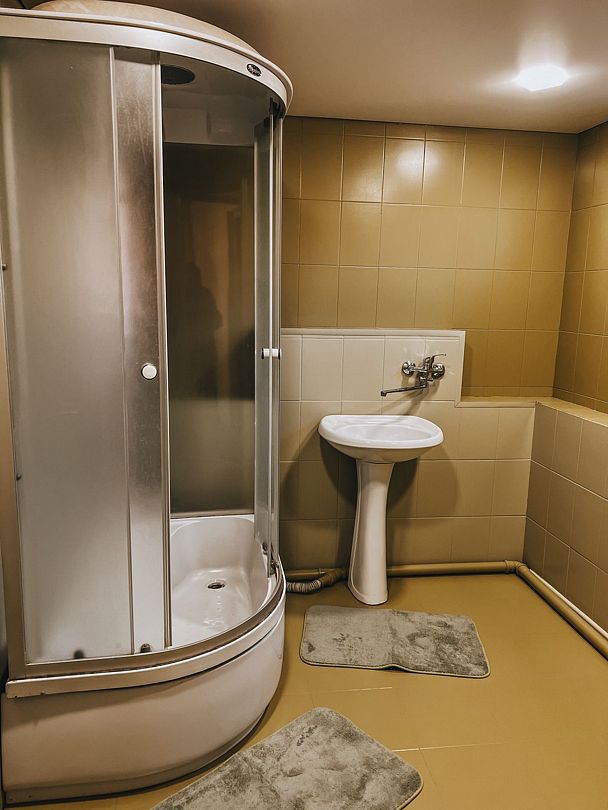 Душ и туалет на территории базы в 20 метрах — благоустроенный санитарный блок.
