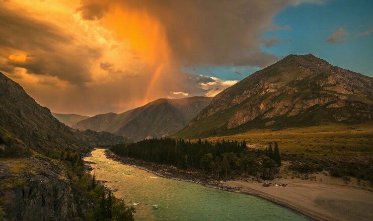 Катунь - самая большая река горного Алтая, где практически нет болот вдоль берегов и вследствие этого практически полное отсутствие мошки и комаров. Великолепная природа — тайга, горы, меняющие цвет несколько раз в год, температура воздуха 20 -25 градусов вплоть до середины октября — все это делает активный отдых на Алтае незабываемым! Здесь проводятся республиканские и российские чемпионаты ( На видео и фото ниже -Кубок России по рафтингу 2017 г -кордон Кур-Кучу, Онгудайский район, участок Катуни с. Малый Яломан — устье реки Урсул — порог Большой Ильгуменский,Кадринская труба,порог Шабаш)