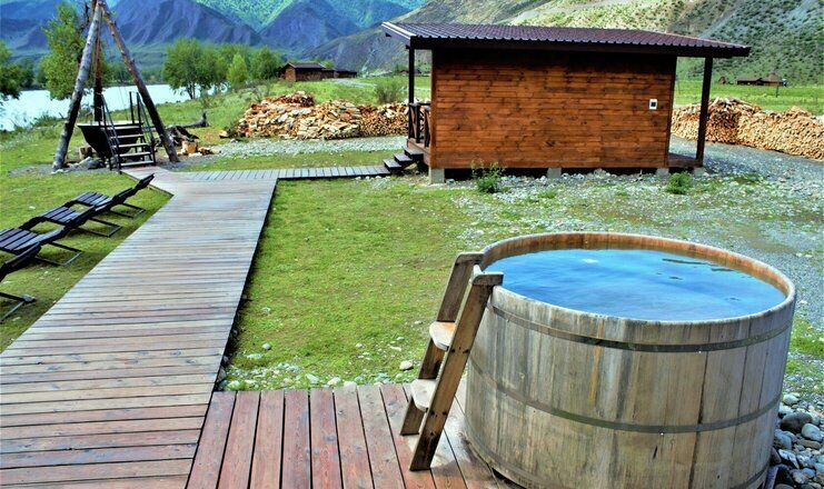Короткий отпуск с друзьямиОтдых душой и телом!Отдыхали большой компанией в начале сентября. Потрясающий вид из домика на Катунь, вечером песни у костра, днем бассейн и офигенная баня! Брали еще чан, варились там как в супчике)) Нереальная перезагрузка на природе, вдали от цивилизации при этом с комфортом.