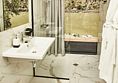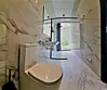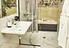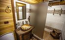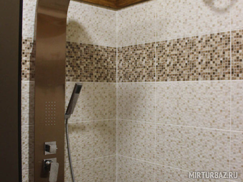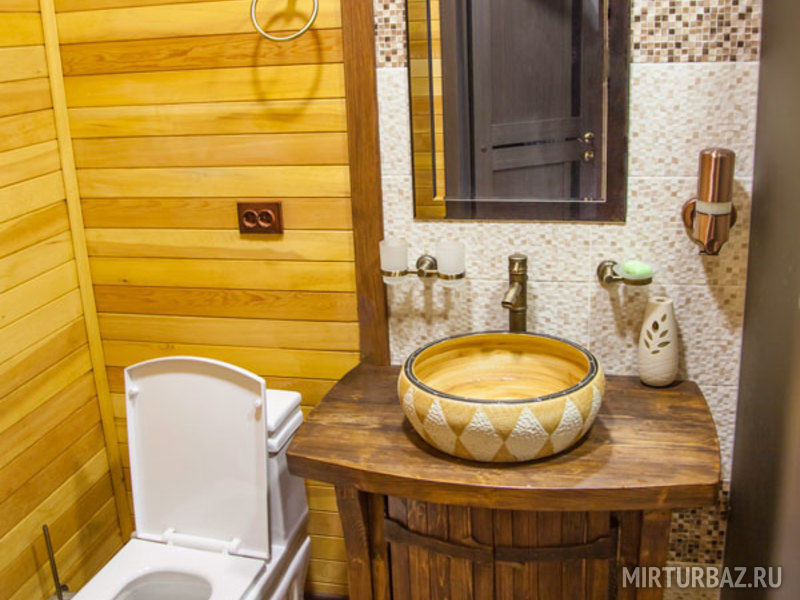 Туалетная комната: душ, унитаз, раковина, горячая вода, тёплый обогреваемый пол, набор полотенец, фен, гигиенический набор.