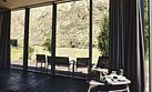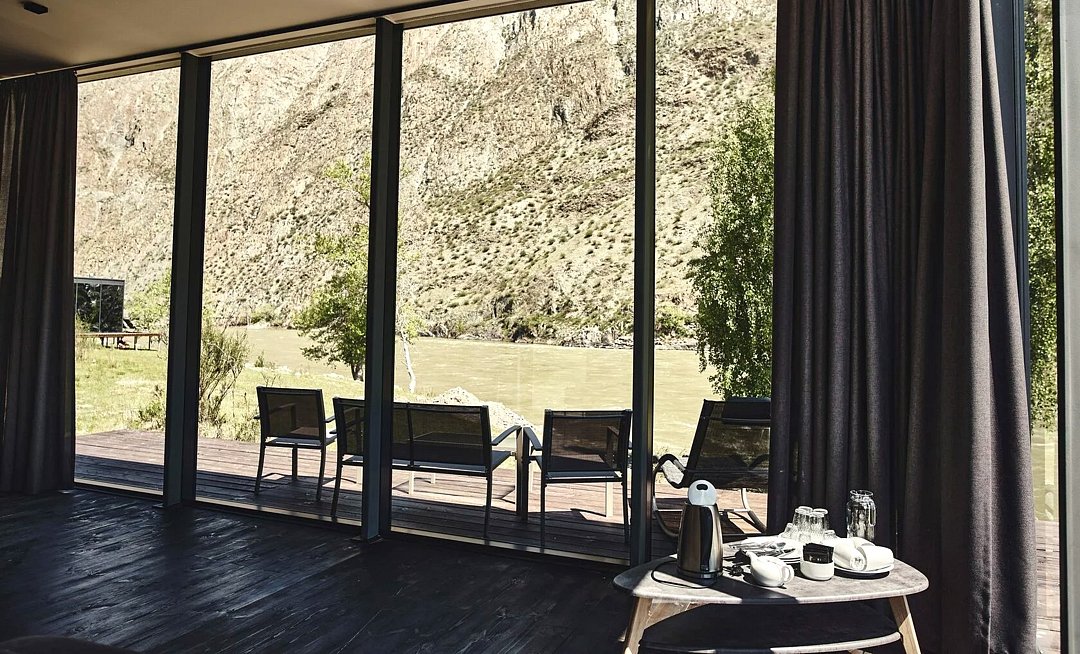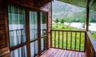 Панорамные окна и двери с невероятно красивым видом на горы и реку! И балкон с таким же чудесным видом. Есть фен в номере, но халатов не оказалось. Территория отеля большая, завтраки вкусные (шведский стол). С 9 утра до 18 отключают воду и свет.