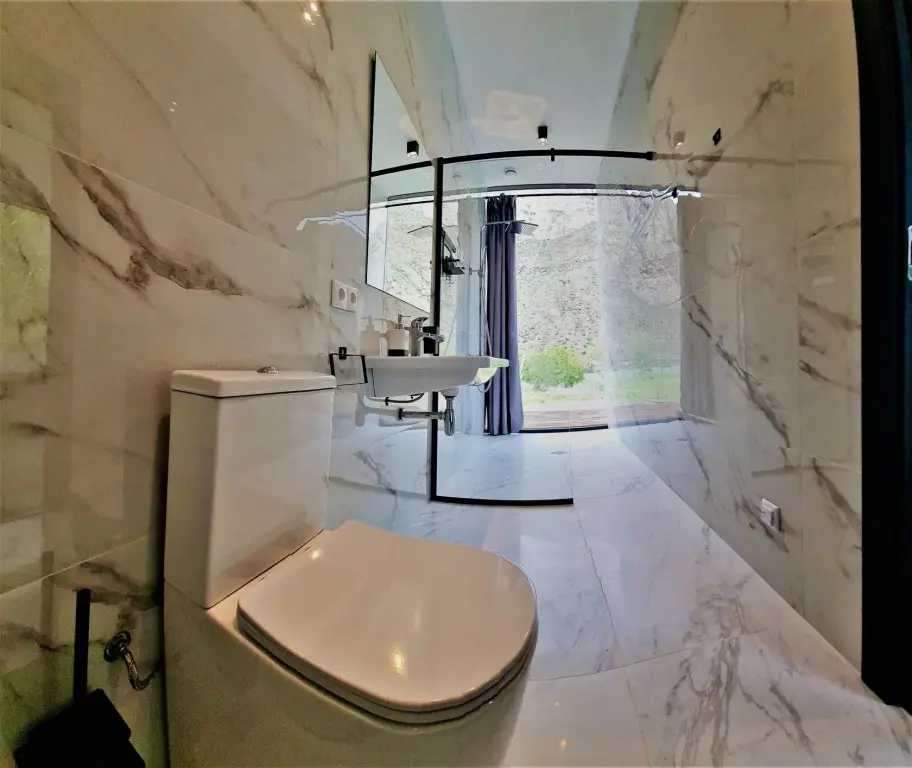 Шикарные домики с удобными кроватями и белоснежным постельном бельём! Даже пол в ванной комнате подогреваемый! Душевая большого размера!
