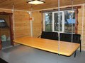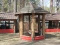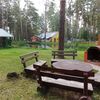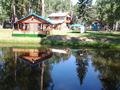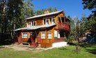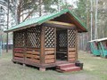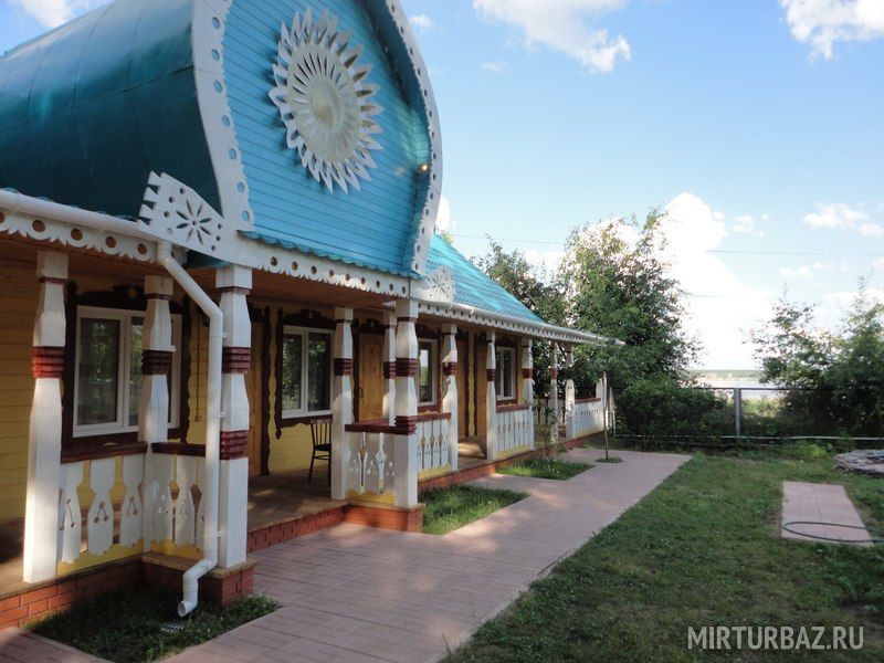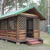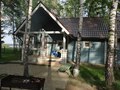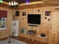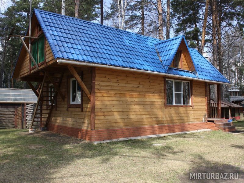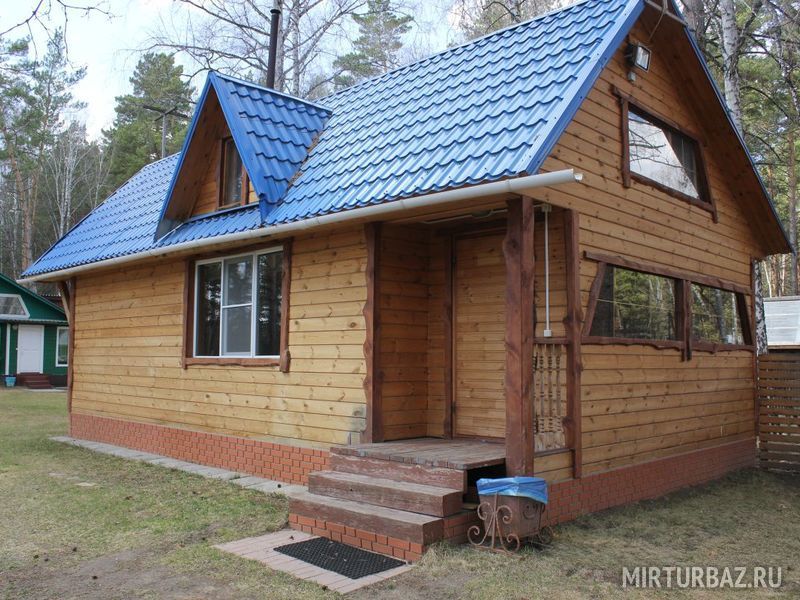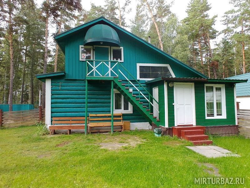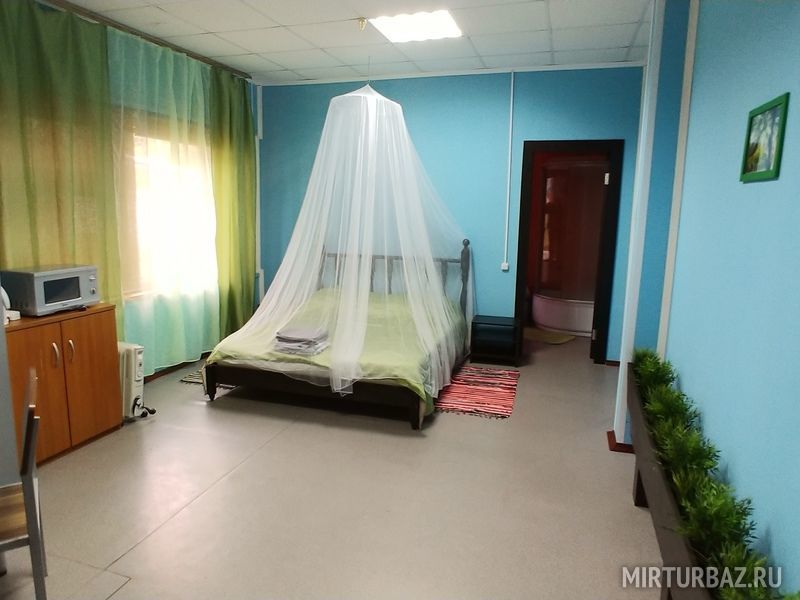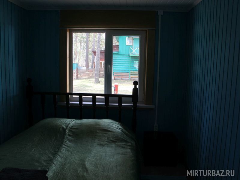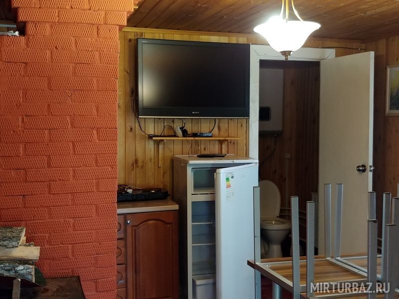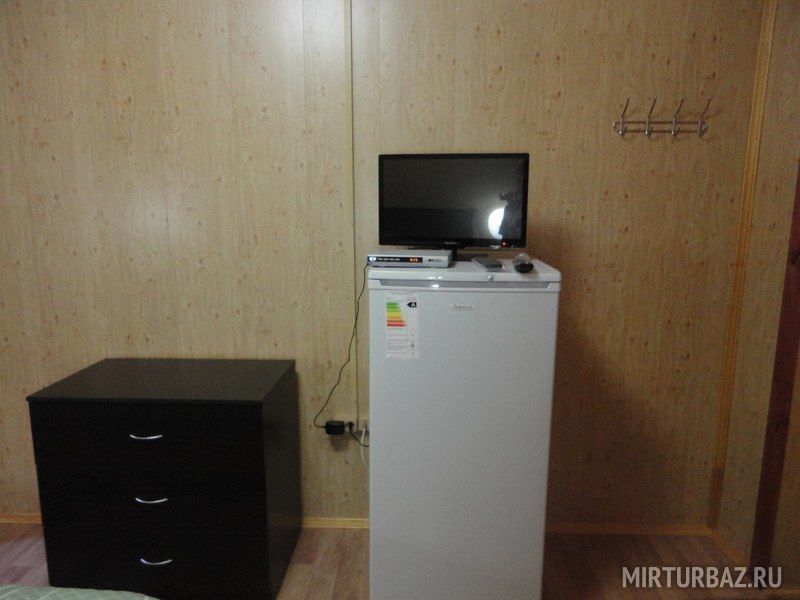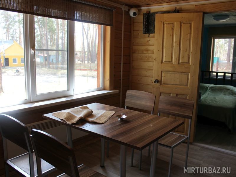 Предназначен для проживания в летнее время (без отопления). Можно поставить калорифер в случае низкой температуры на улице. Есть душ с холодной и горячей водой и санузел. Каждый номер укомплектован мебелью, кухонным гарнитуром, набором посуды, микроволновой печью, чайником. Имеется телевизор, по одному на два номера. Рядом с домом имеется гриль – аренда 1000 руб. в сутки.