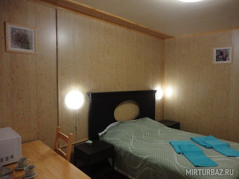 В номере есть душевая кабина, санузел, горячая и холодная вода круглый год. Номер укомплектован мебелью, кухонным гарнитуром, набором посуды, микроволновой печью, чайником. Имеется телевизор.