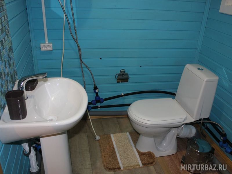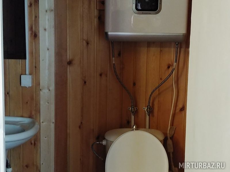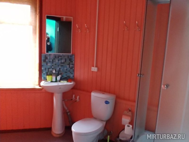 Два санузла внутри дома, по одному на два номера. Есть душ с холодной и горячей водой.