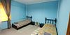 В каждом номере по три односпальных кровати. Два санузла внутри дома, по одному на два номера. Есть душ с холодной и горячей водой.