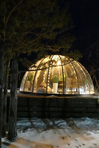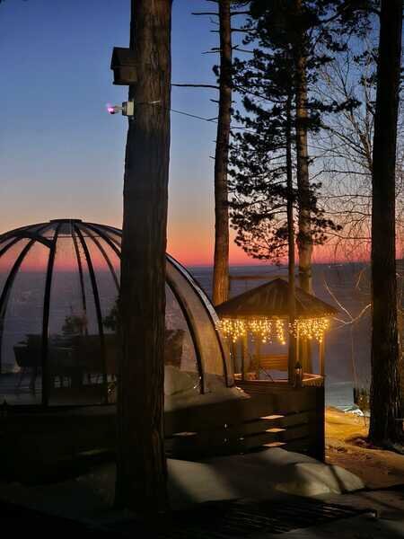 Две купольные беседки с невероятно красивым видом с современным дизайном и теплым полом. Купол рассчитан на компанию до 6 человек.