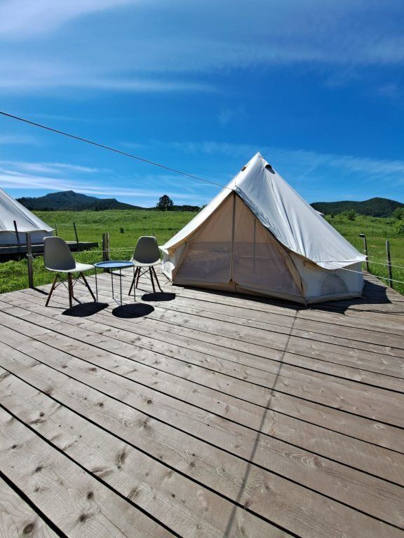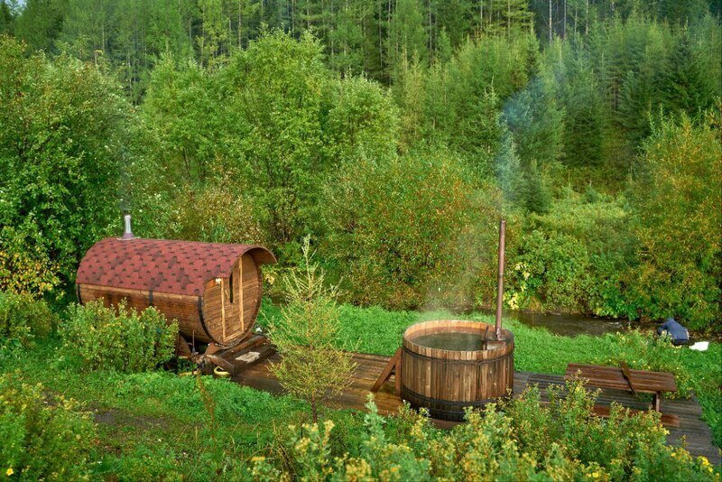 Уютные юрты и шатры в кемпинге оборудованы всем необходимым для комфортного пребывания. Баня и горячие купели, расположенные на берегу живописного ручья и укрытые от посторонних, позволят погрузиться в особую атмосферу. Питание можно как заказать, так и приготовить самим в специально отведённой зоне.