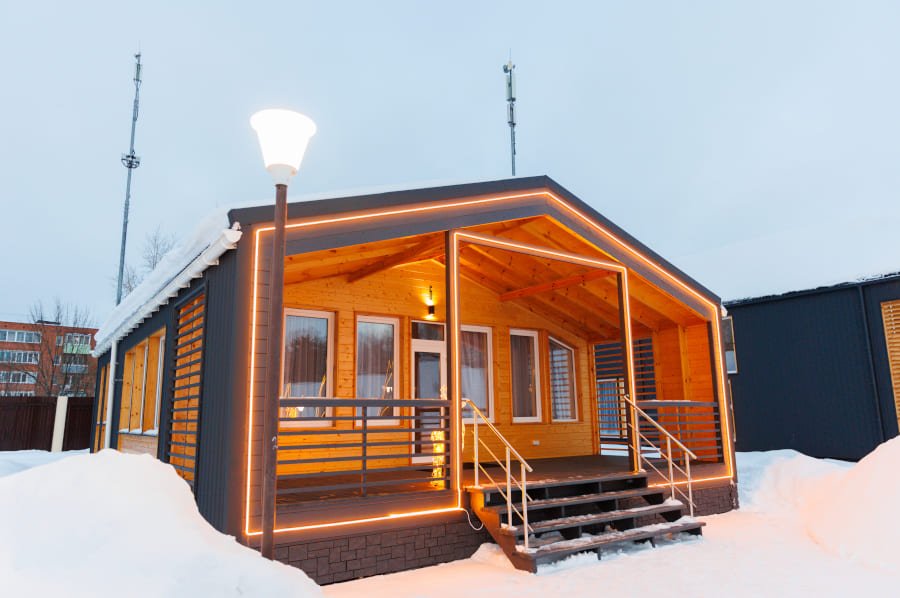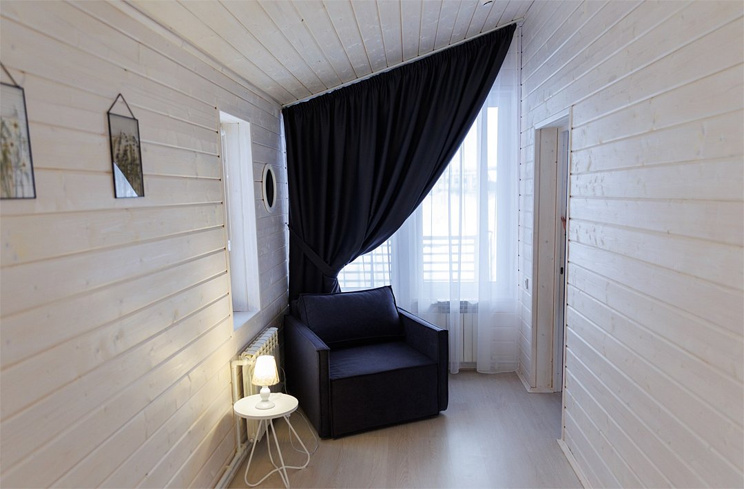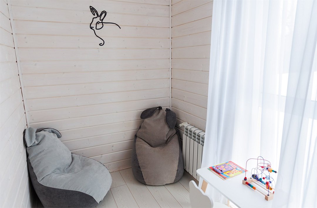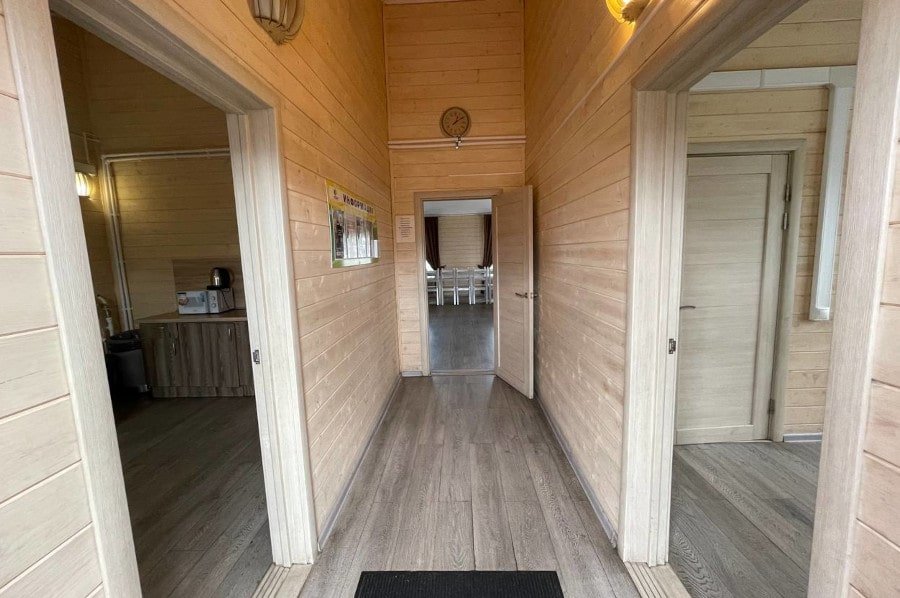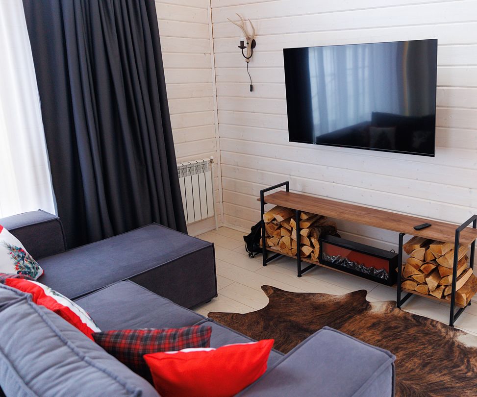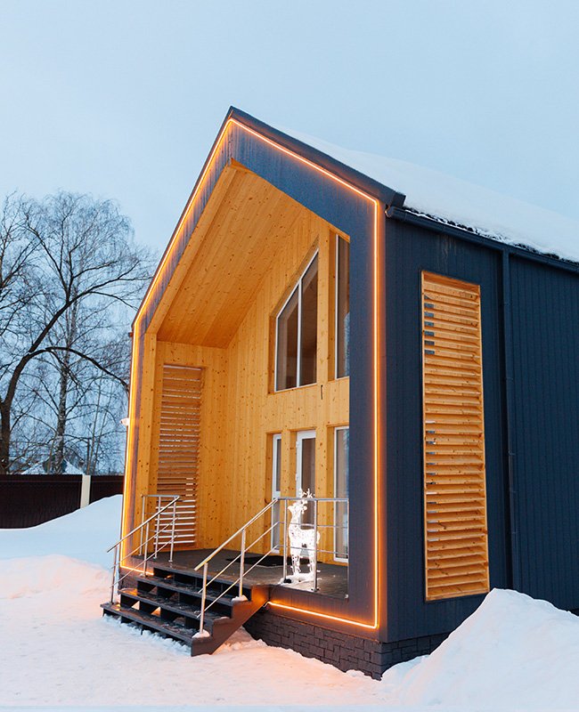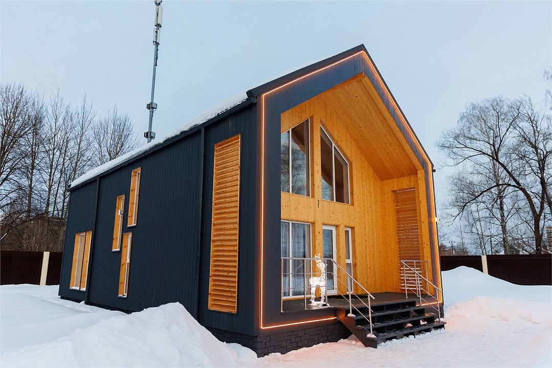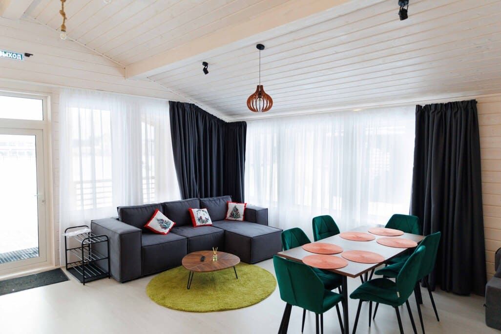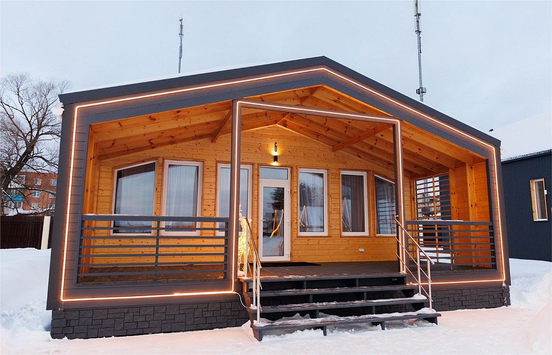 «Модуль-Дом» оформлен в стиле минимализма с использованием натуральных материалов, создавая атмосферу умиротворения и спокойствия.