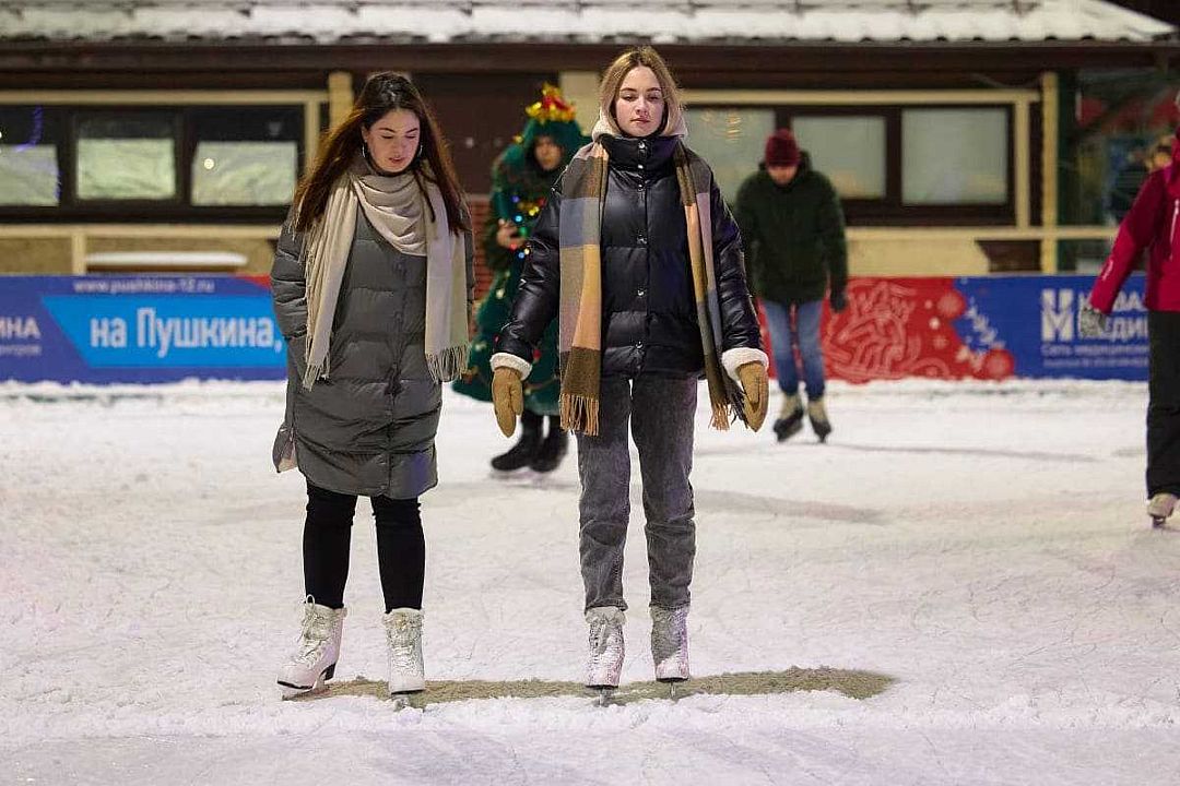 Каток площадью 2500 квадратных метров предлагает качественный лёд и пункты проката коньков и заточки. Для начинающих фигуристов предусмотрены специальные помощники, которые помогут освоить основы катания. Забавные пингвины и миньоны помогут вашим детям уверенно встать на коньки и держать равновесие. Первые шаги на льду станут более комфортными с милыми персонажами.
