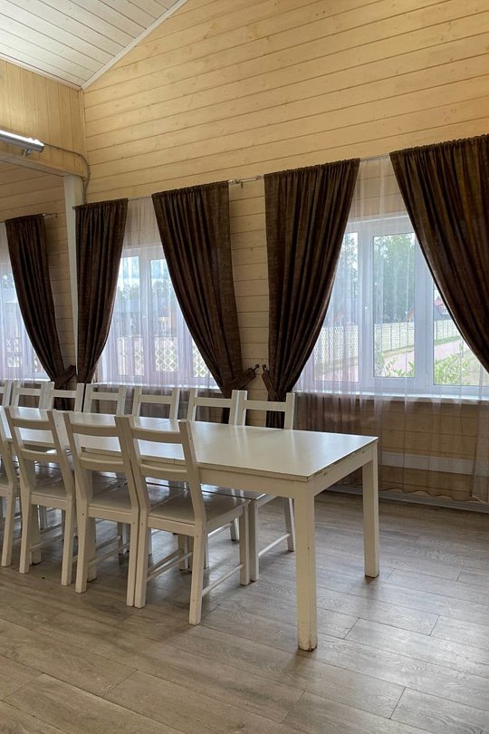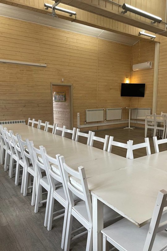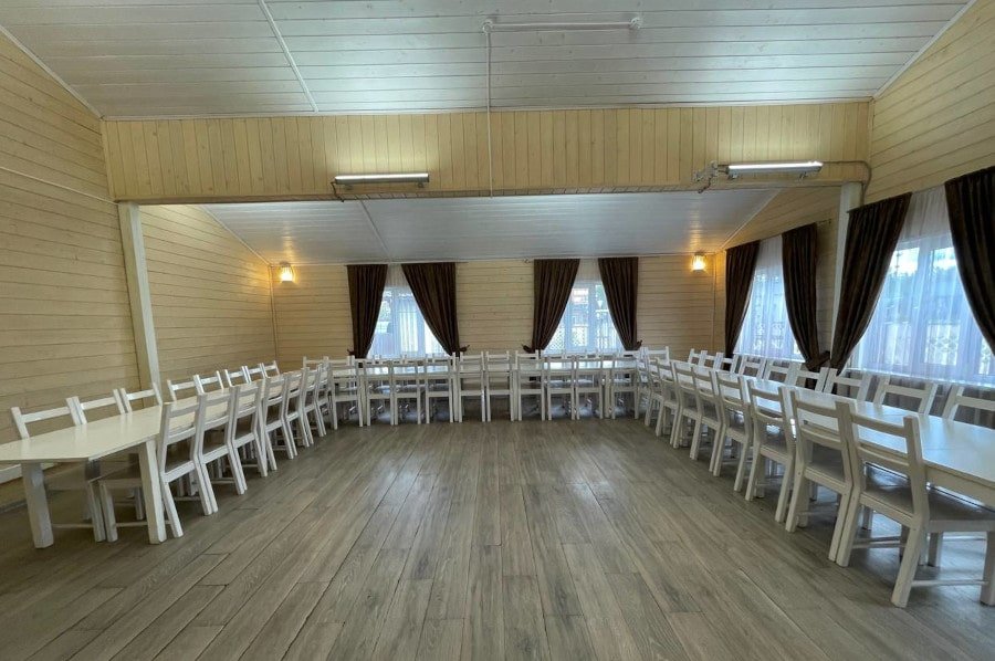 Уютное пространство площадью 45 м² и вмещающее до 30 человек идеально подходит для семейных праздников и мероприятий любого характера. Здесь есть кухонный уголок с холодильником и раковиной, санузел, обеденный стол и диван для отдыха. Внутренний дворик с мангальной зоной позволяет организовать время на свежем воздухе.
