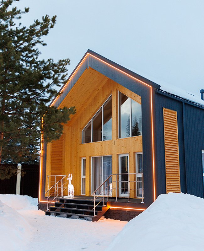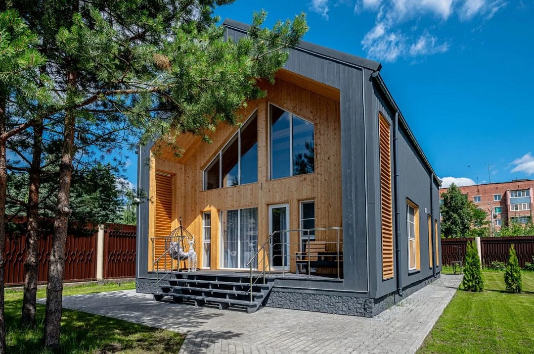 Отличительной особенностью этого дома является сауна, которая находится прямо внутри дома. «Модуль-Дом» оформлен в стиле минимализма с использованием натуральных материалов, что создает атмосферу умиротворения и спокойствия.