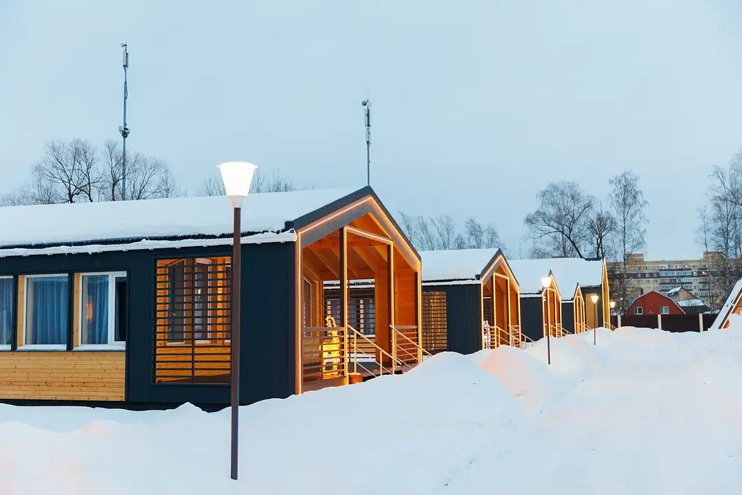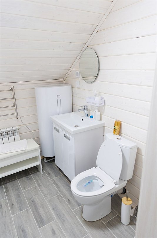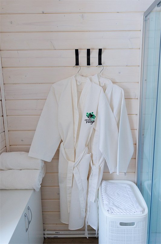 Домик оснащен санузлом с душевой кабиной, полноценной кухней с плитой, чайником, микроволновкой и холодильником, а также всей необходимой посудой. Для вашего комфорта в каждом доме предусмотрено централизованное отопление и кондиционер.