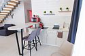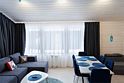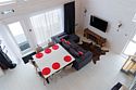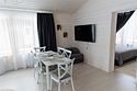Гостиная, совмещенная с кухней, оборудована огромным двуспальным раскладным диваном. В одной спальне находится двуспальная кровать (при необходимости разделяемая на две односпальные), а в другой — удобный диван и кресло-трансформер, что позволяет создать дополнительное спальное место.