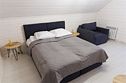 В гостиной, совмещенной с кухней, расположен огромный двуспальный раскладной диван и кресло-трансформер (для доп. спального места), в спальнях — двуспальные кровати (при необходимости разделяется на две односпальных) и кресла-трансформеры (для доп. спального места).