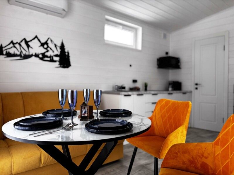 Домики удачно сочетают комфорт, стиль и функциональность, а современный интерьер создает атмосферу уюта и гармонии. Каждый домик оборудован всем необходимым для комфортного проживания.