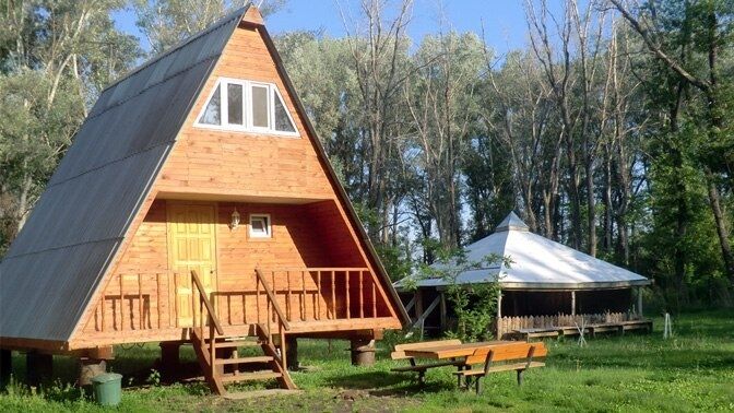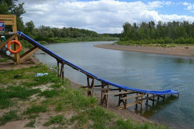 На самом берегу реки Сакмары расположена баня на дровах, с водяной горкой в чистые воды реки.