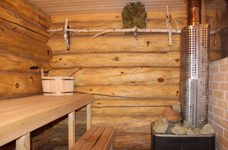 Печь протапливается на дубовых дровах, что дает равномерный и мягкий пар.