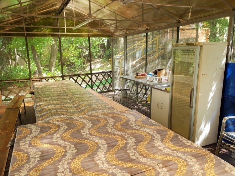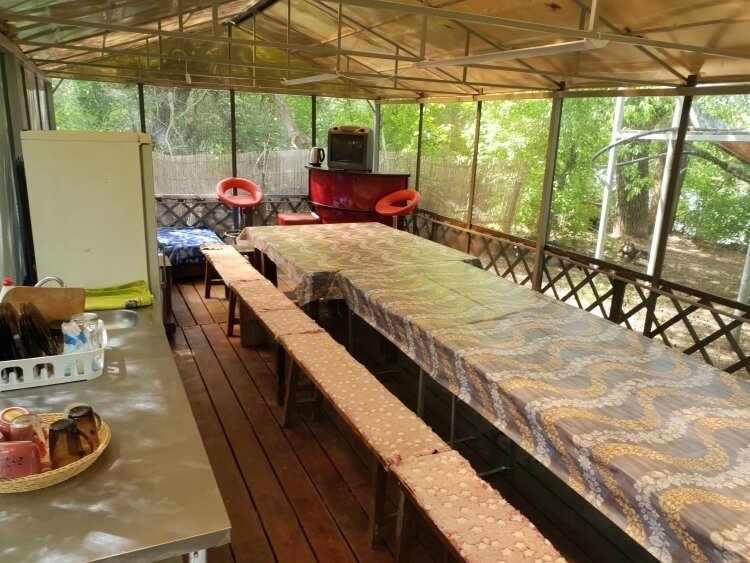 На территории комплекса есть зона для пикников. Здесь установлены мангалы и оборудование для гриля. Для мужчин построен специальный домик для посиделок.