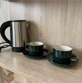 Включён завтрак, халаты, тапочки, гигиенический набор (шампуни, гель для душа, зубной набор, расчески). Чай, кофе.