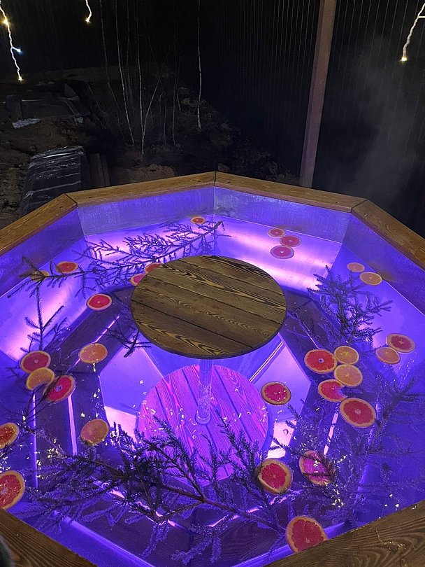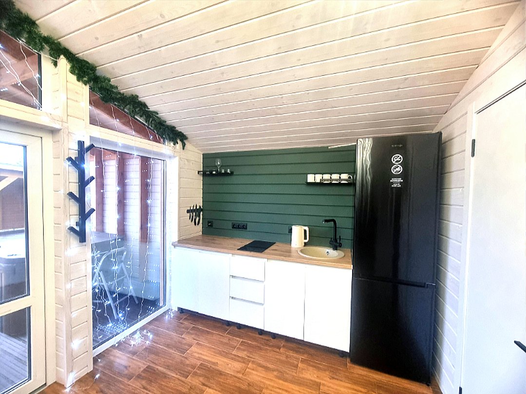 Возле каждого дома вы найдете Сибирский банный чан на дровах, джакузи на террасе и настоящую баню, а также полностью оборудованные пространства для вашего комфорта.