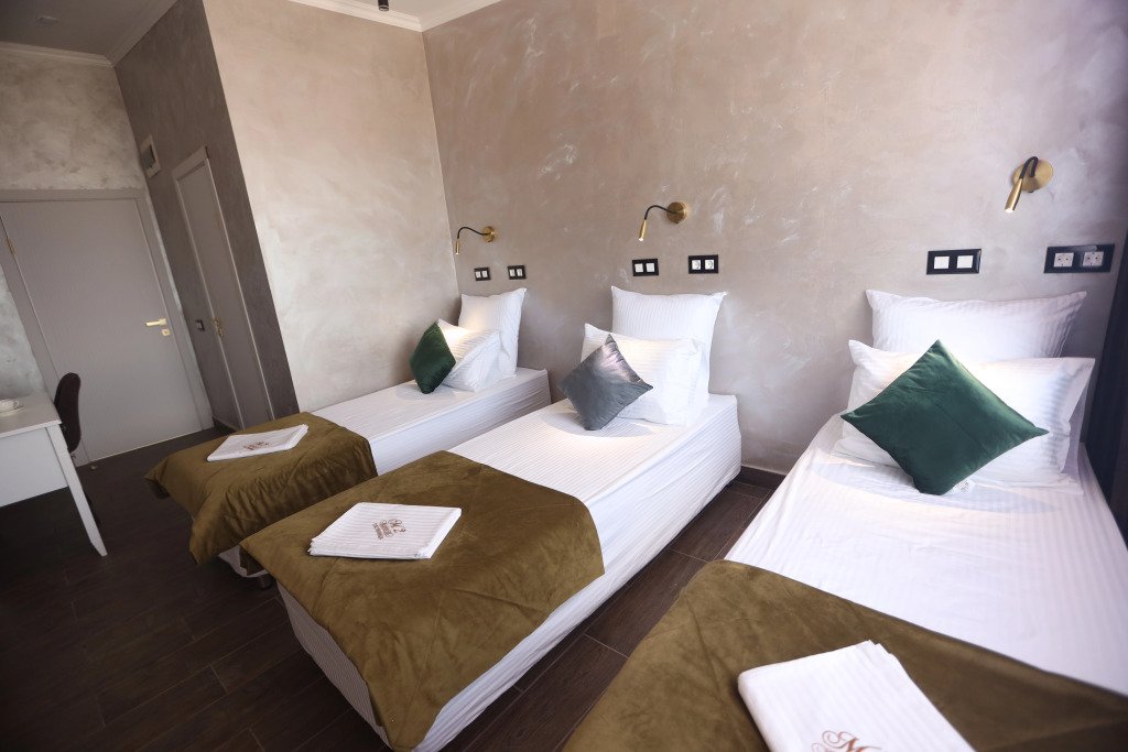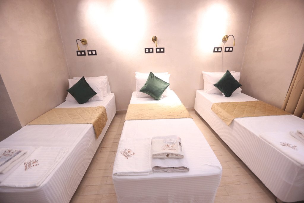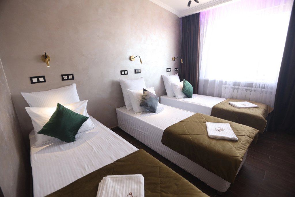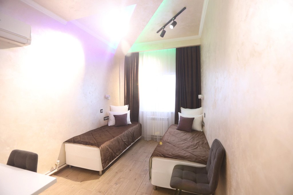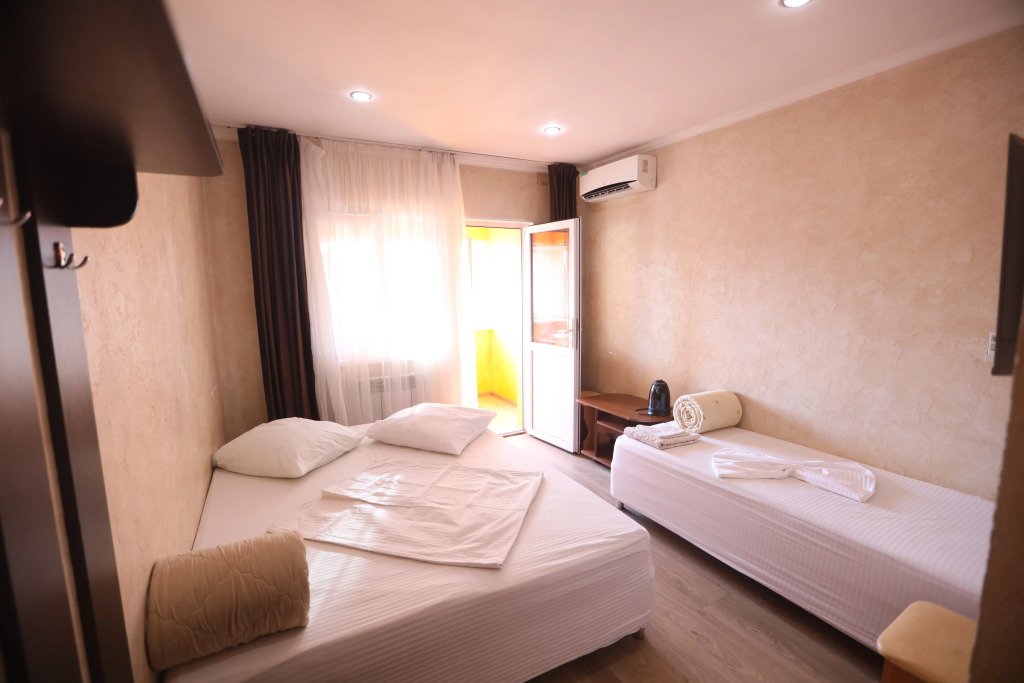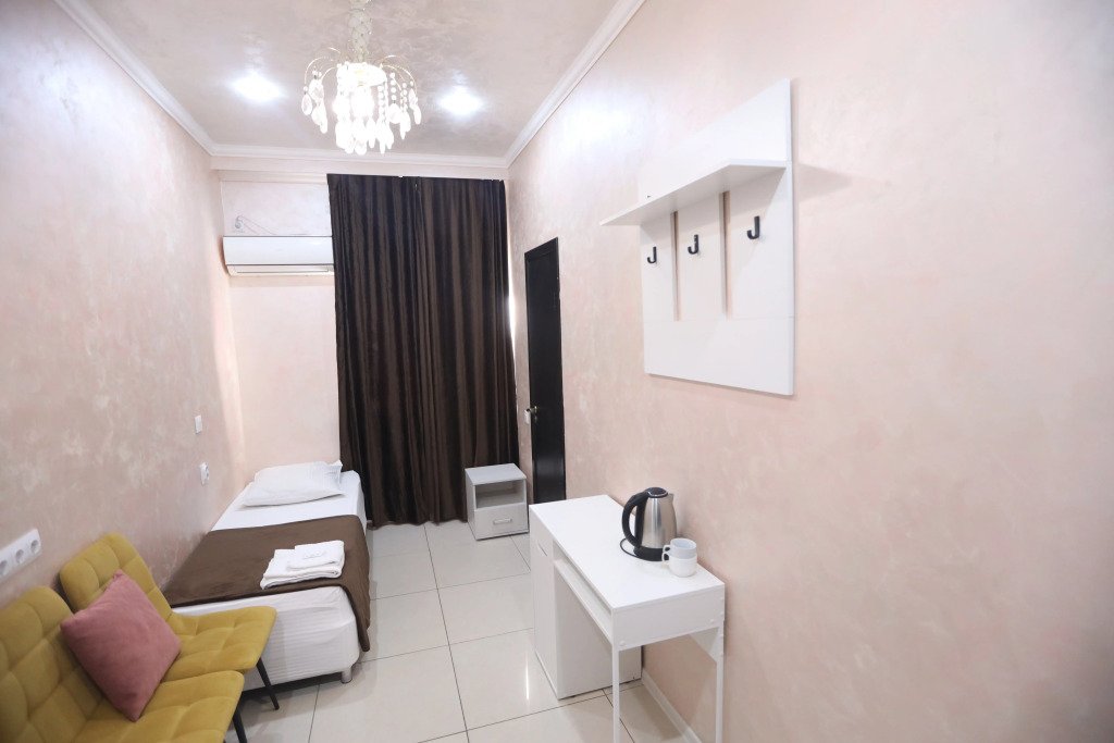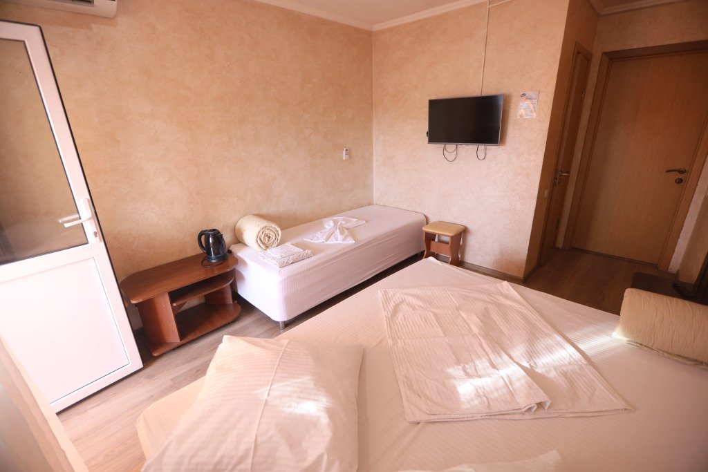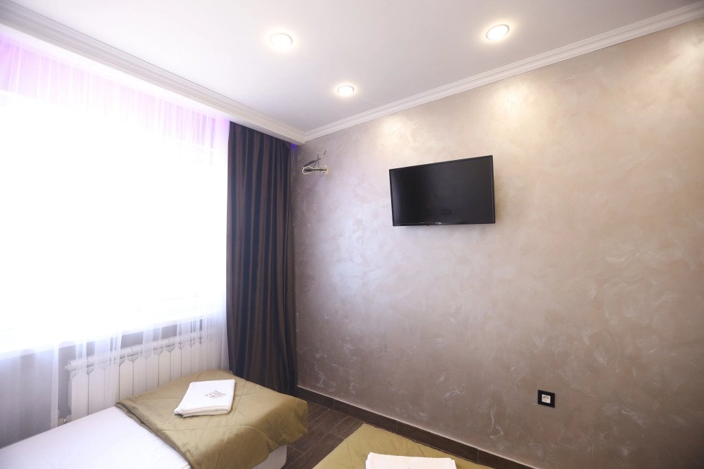 В номере гостей ждут телевизор и халат. Перечисленные услуги есть не во всех номерах.