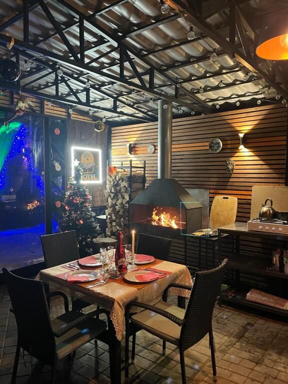 У дома отдельная благоустроенная территория, зона барбекю с летней кухней, канализацией, газовой плитой, холодная и горячая вода, лаундж-зона. Максимальное количество проживающих — 4 гостя. Активный отдых: настольный теннис, велосипеды, бадминтон, шахматы, нарды. Есть уличная мебель, включая лежаки. Установлены световые и акустические системы.