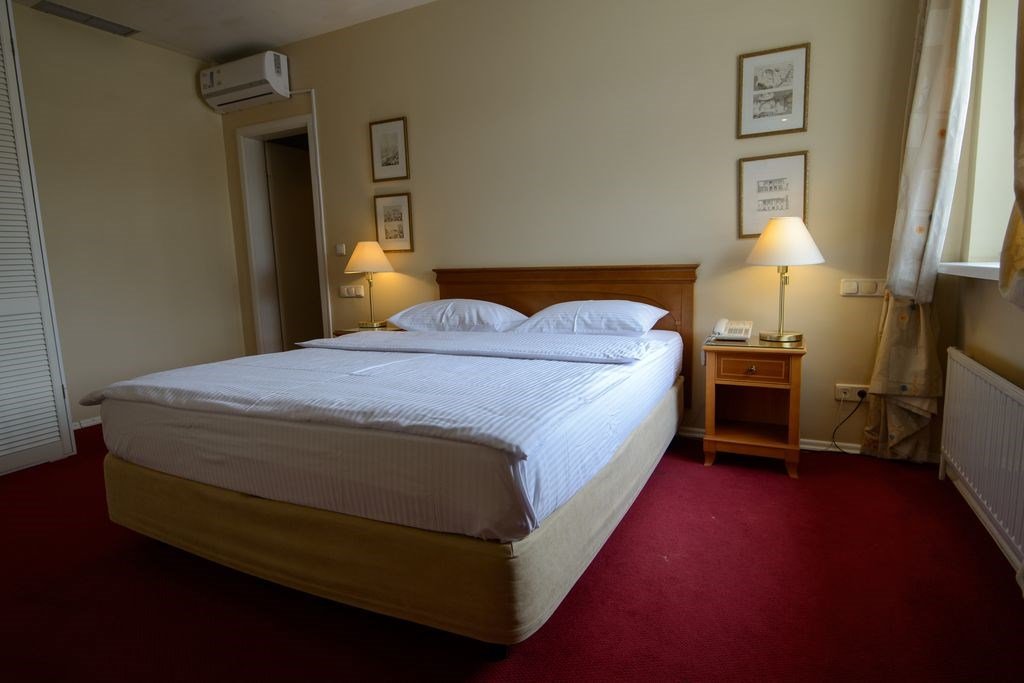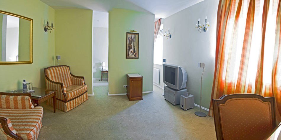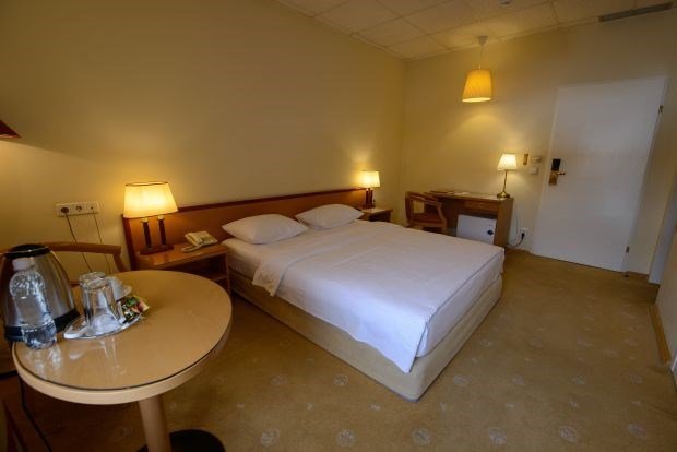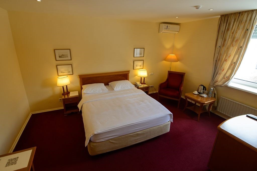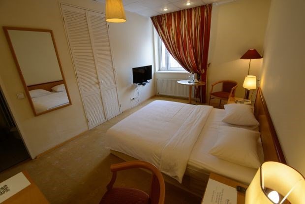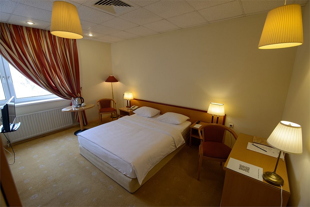Номера оборудованы одной двухспальной кроватью. Окна номеров выходят на северо — восток. Номера обставлены добротной немецкой мебелью, тщательно декорированы и обустроены. Каждый номер отличает разнообразная цветовая гамма ковровых покрытий, штор, покрывал, обивки кресел.Услуги и удобства
