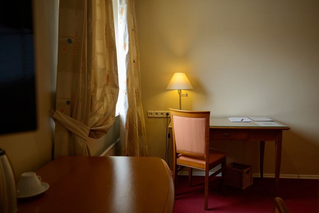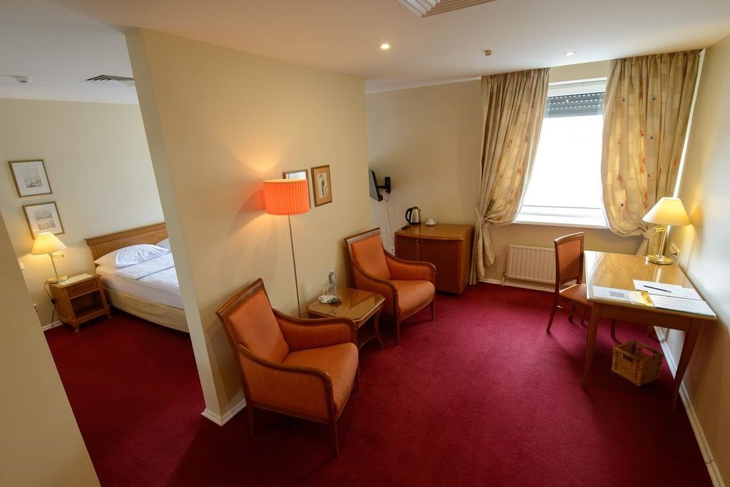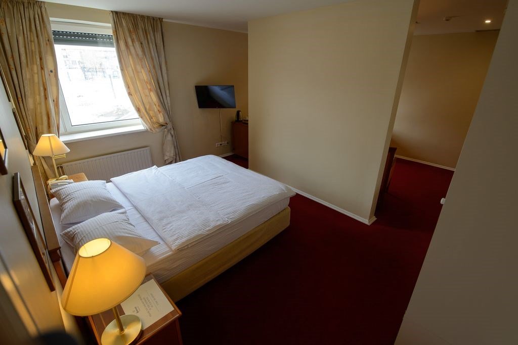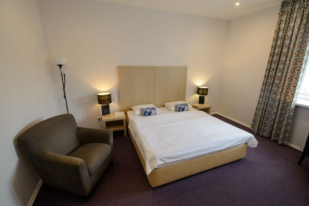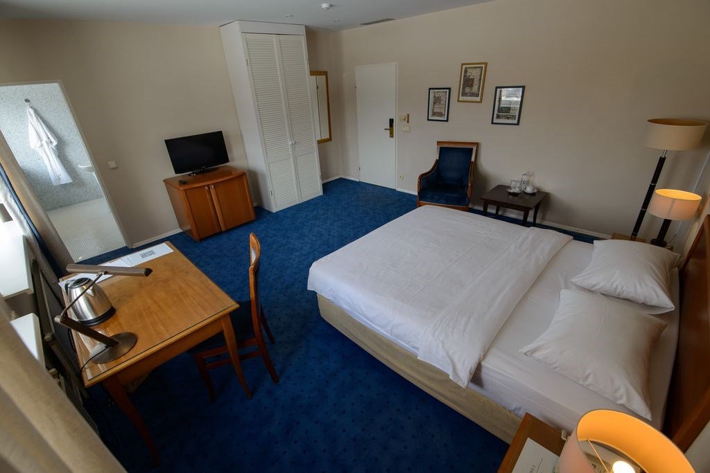 Номера оборудованы одной двухспальной кроватью. Окна номеров выходят на северо — восток. Номера обставлены добротной немецкой мебелью, тщательно декорированы и обустроены. Каждый номер отличает разнообразная цветовая гамма ковровых покрытий, штор, покрывал, обивки кресел.Услуги и удобства